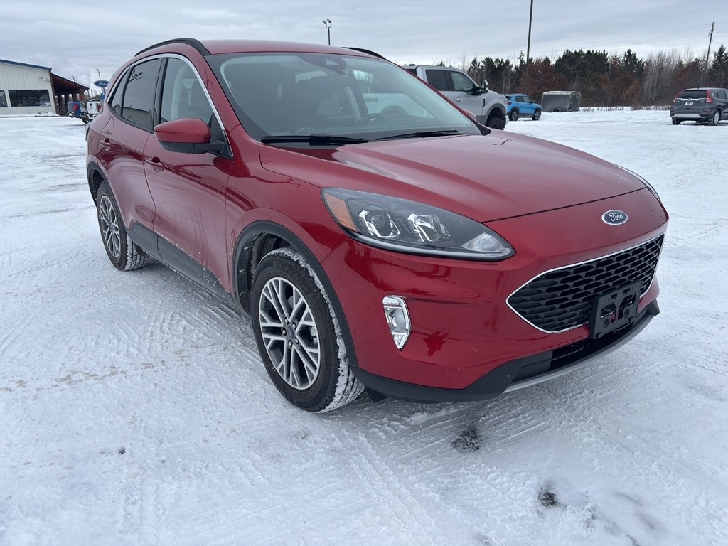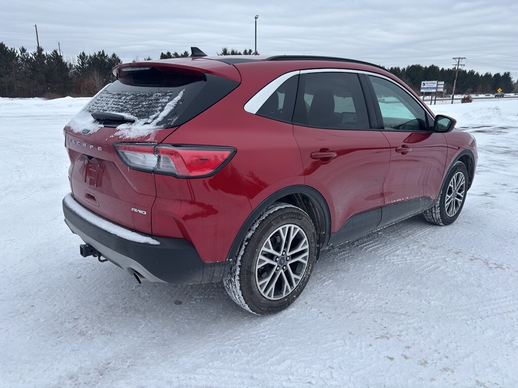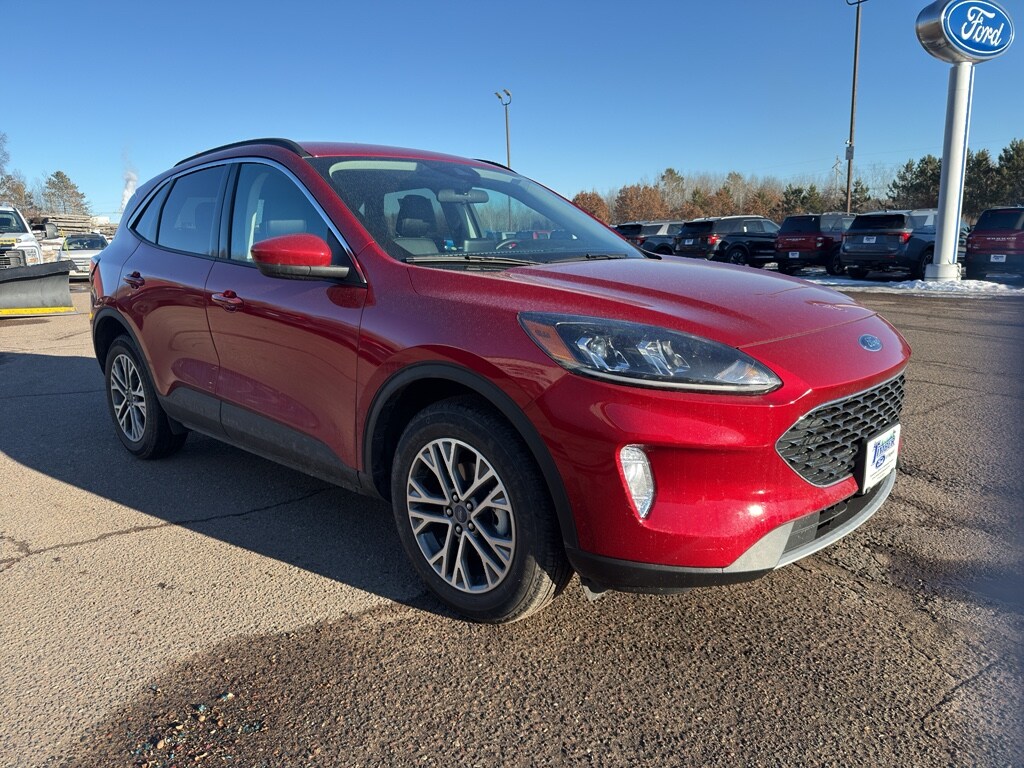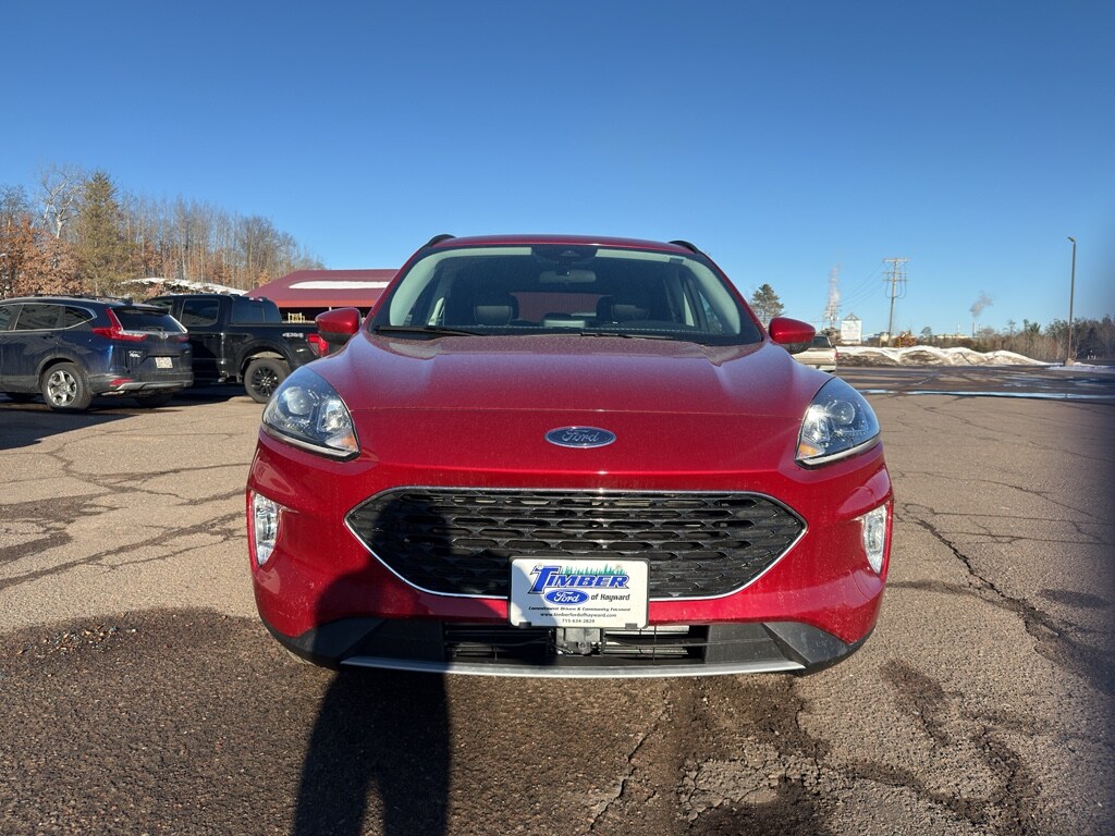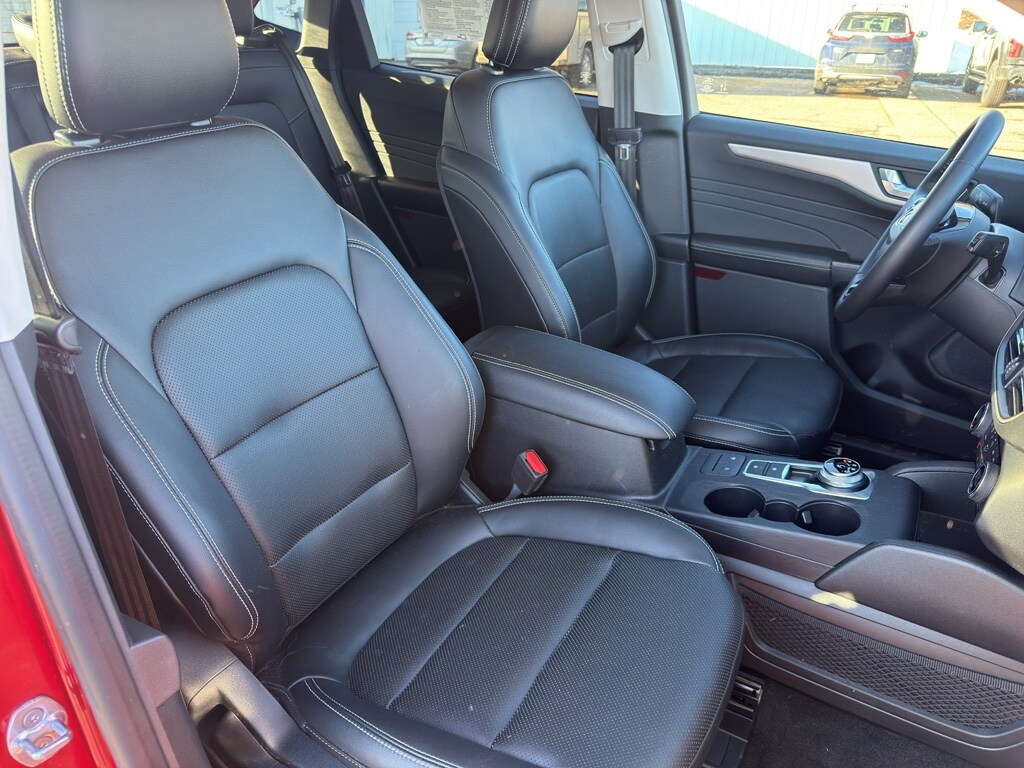 This model has four wheel drive capabilities. This vehicle has automated speed control that adjusts to maintain a safe following distance, enhancing highway driving convenience. This vehicle offers Android Auto for seamless smartphone integration. It offers Apple CarPlay for seamless connectivity. This Ford Escape keeps you comfortable with Auto Climate. The high efficiency automatic transmission shifts smoothly and allows you to relax while driving. Protect this vehicle from unwanted accidents with a cutting edge backup camera system. Maintaining a stable interior temperature in this small suv is easy with the climate control system. This Ford Escape warns of approaching vehicles with Cross-Traffic Alert. This Ford Escape features cruise control for long trips. Electronic Stability Control is one of many advanced safety features on this unit. The Ford Escape has a 4 Cyl, 2.0L high output engine. The fog lights cut through the weather so you can see what's ahead. The Ford Escape is equipped with a gasoline engine. The Ford Escape features a hands-free Bluetooth phone system. Keep your hands warm all winter with a heated steering wheel in this vehicle . The leather seats in this small suv are a must for buyers looking for comfort, durability, and style. With the adjustable lumbar support in this unit your back will love you. The installed navigation system will keep you on the right path. Enjoy the convenience of the power liftgate on the vehicle. The rear parking assist technology on this small suv will put you at ease when reversing. The system alerts you as you get closer to an obstruction. This small suv excites both driver and bystanders with a polished red exterior with racy lines. Never get into a cold vehicle again with the remote start feature on this small suv. The perfect balance of space and size. the vehicle cruises through the city with ease. This 2021 Ford Escape is equipped with the latest generation of XM/Sirius Radio.