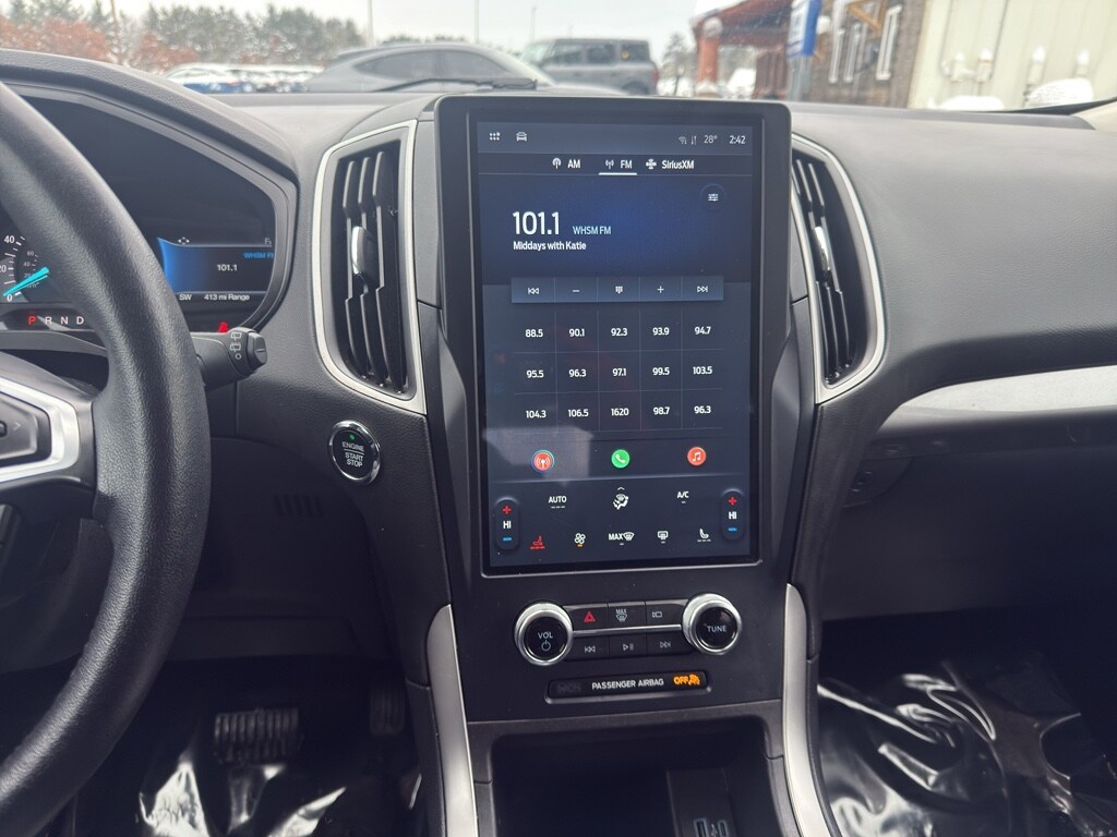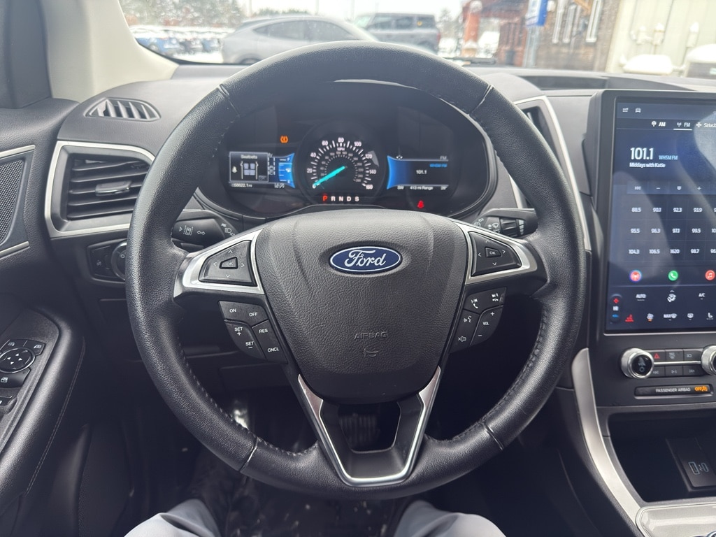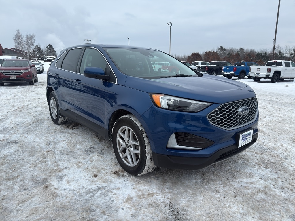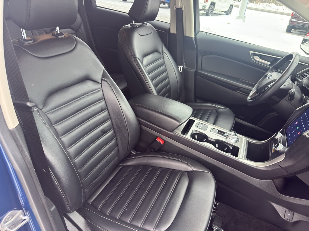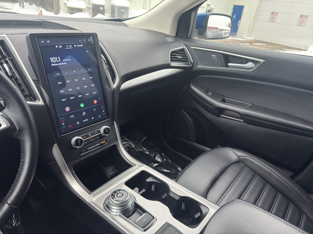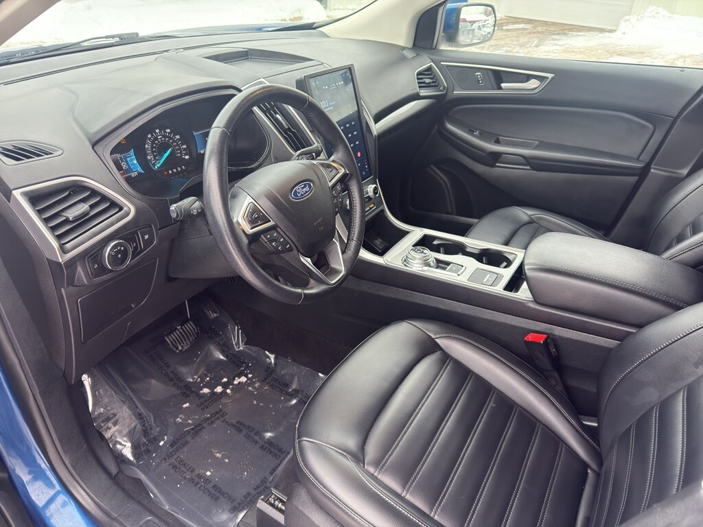 Conquer any rainy, snowy, or icy road conditions this winter with the all wheel drive system on this vehicle. The vehicle comes equipped with Android Auto for seamless smartphone integration on the road. Apple CarPlay: Seamless smartphone integration for this model - stay connected and entertained on the go! This vehicle keeps you comfortable with Auto Climate. This unit has an automatic transmission. See what's behind you with the back up camera on this 2023 Ford Edge . This 2023 Ford Edge shines with an exquisite blue finish. This vehicle is a certified CARFAX 1-owner. Our dealership has already run the CARFAX report and it is clean. A clean CARFAX is a great asset for resale value in the future. Set the temperature exactly where you are most comfortable in the vehicle. The fan speed and temperature will automatically adjust to maintain your preferred zone climate. This 2023 Ford Edge 's Cross-Traffic Alert: Safeguarding you from unexpected traffic when reversing. This 2023 Ford Edge features cruise control for long trips. The Electronic Stability Control will keep you on your intended path. The Ford Edge has a 4 Cyl, 2.0L high output engine. Enjoy the tried and true gasoline engine in this mid-size suv. This unit features a hands-free Bluetooth phone system. The leather seats in this 2023 Ford Edge are a must for buyers looking for comfort, durability, and style. Help alleviate lower back pain with the driver seat lumbar support in this Ford Edge. The spacious cabin accommodates your family and friends in comfort. Take it to the mountains or the beach. this 2023 Ford Edge can handle it all. The state of the art park assist system will guide you easily into any spot. Start the Ford Edge from inside with remote start.