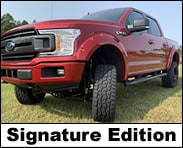 The Ford F-150 Signature Edition is our base model lifted truck that allows you to totally customize your unique design. Browse through several accessory options to satisfy any budget. We use only proven components on all of our builds and provide any assistance with helping you design your build.