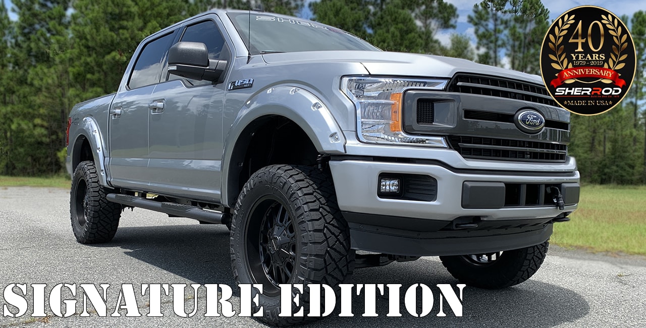Ford Lifted Trucks by Sherrod are rugged, tough and luxurious. While that term may not be one that you generally associate with trucks, the Sherrod difference will make you think again. Our Custom Lifted Trucks include lift kits, Sherrod performance exhaust and custom diamond pleated leather seat upgrades. These premium options along with all Sherrod conversions are eye-catching and take your driving comfort to a whole new level.