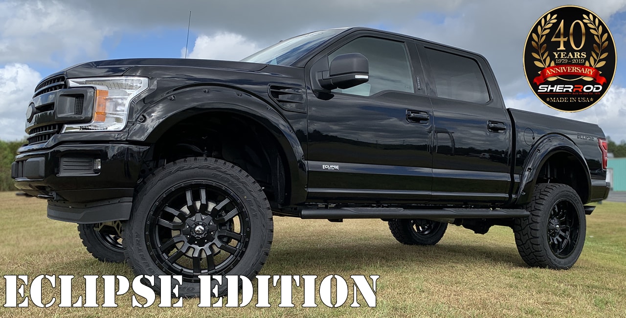 The Ford F-150 Eclipse Edition was an inspiration of a total blacked out awesome looking lifted truck. It was designed to have the look of class but not to be mistaken for weakness. The bad boy aggressive looking features are carried into the interior with custom DBL diamond stitching and carbon fiber trim. This truck is capable of trip to woods or parked in the valley entrance next to any exotic. It has THE LOOK!!! Customize your Eclipse to your unique theme.