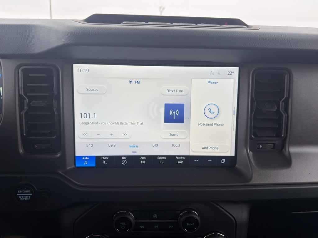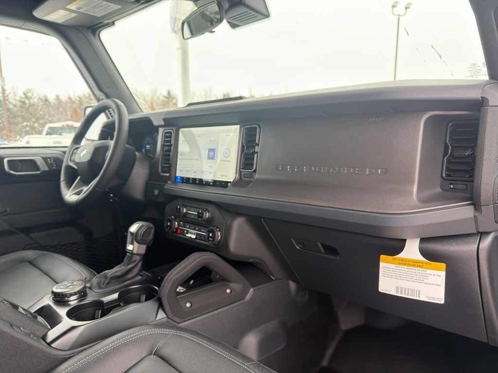 Carry lots of cargo while your passengers are comfortable. When you encounter slick or muddy roads, you can engage the four wheel drive on the Ford Bronco and drive with confidence. Anti-lock brakes are standard on this model. This Ford Bronco offers Android Auto for seamless smartphone integration. This 1/2 ton suv offers Apple CarPlay for seamless connectivity. This unit keeps you comfortable with Auto Climate. This vehicle has an automatic transmission. Protect the Ford Bronco from unwanted accidents with a cutting edge backup camera system. Set the temperature exactly where you are most comfortable in the vehicle. The fan speed and temperature will automatically adjust to maintain your preferred zone climate. This 1/2 ton suv warns of approaching vehicles with Cross-Traffic Alert. Easily set your speed in this 2025 Ford Bronco with a state of the art cruise control system. Increase or decrease velocity with the touch of a button. The Electronic Stability Control will keep you on your intended path. This 2025 Ford Bronco has a 4 Cyl, 2.3L high output engine. Enjoy the tried and true gasoline engine in this Ford Bronco. This Ford Bronco projects refinement with a racy metallic gray exterior. This 1/2 ton suv features a hands-free Bluetooth phone system. Heated seats for those cold winter days are included in this model. The installed navigation system will keep you on the right path. An off-road package is equipped on this model. The state of the art park assist system will guide you easily into any spot. Start this model from inside with remote start.