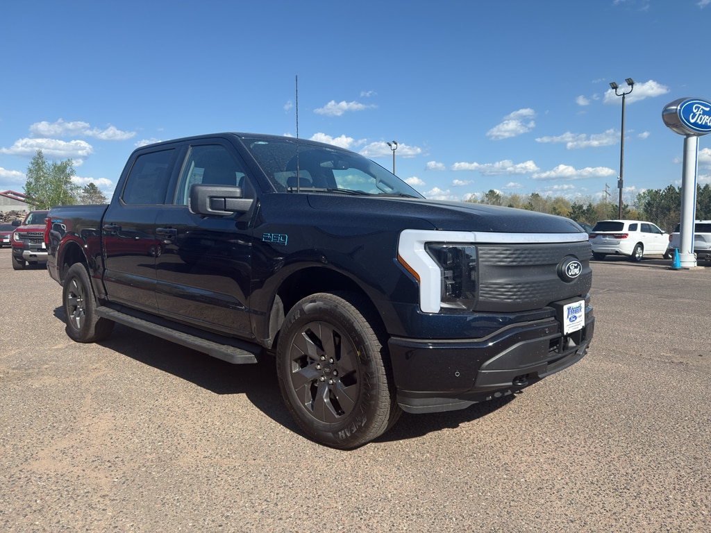 Half ton trucks are the most functional trucks for all purposes. It has four wheel drive capabilities. This vehicle has automated speed control that adjusts to maintain a safe following distance, enhancing highway driving convenience. This vehicle is accented with premium quality alloy wheels. This unit offers Android Auto for seamless smartphone integration. The vehicle offers Apple CarPlay for seamless connectivity. This Ford F-150 Lightning has an automatic transmission. See what's behind you with the back up camera on it. It shines with an exquisite blue finish. Set the temperature exactly where you are most comfortable in this vehicle. The fan speed and temperature will automatically adjust to maintain your preferred zone climate. It warns of approaching vehicles with Cross-Traffic Alert. Easily set your speed in this Ford F-150 Lightning with a state of the art cruise control system. Increase or decrease velocity with the touch of a button. It has a Electric Motor high output engine. This 1/2 ton pickup features a hands-free Bluetooth phone system. Keep your hands warm all winter with a heated steering wheel in this 1/2 ton pickup . The leather seats in the Ford F-150 Lightning are a must for buyers looking for comfort, durability, and style. With the adjustable lumbar support in this unit your back will love you. The installed navigation system will keep you on the right path.
