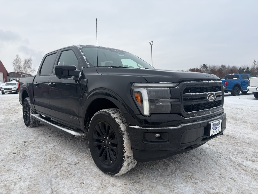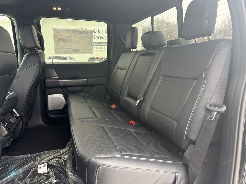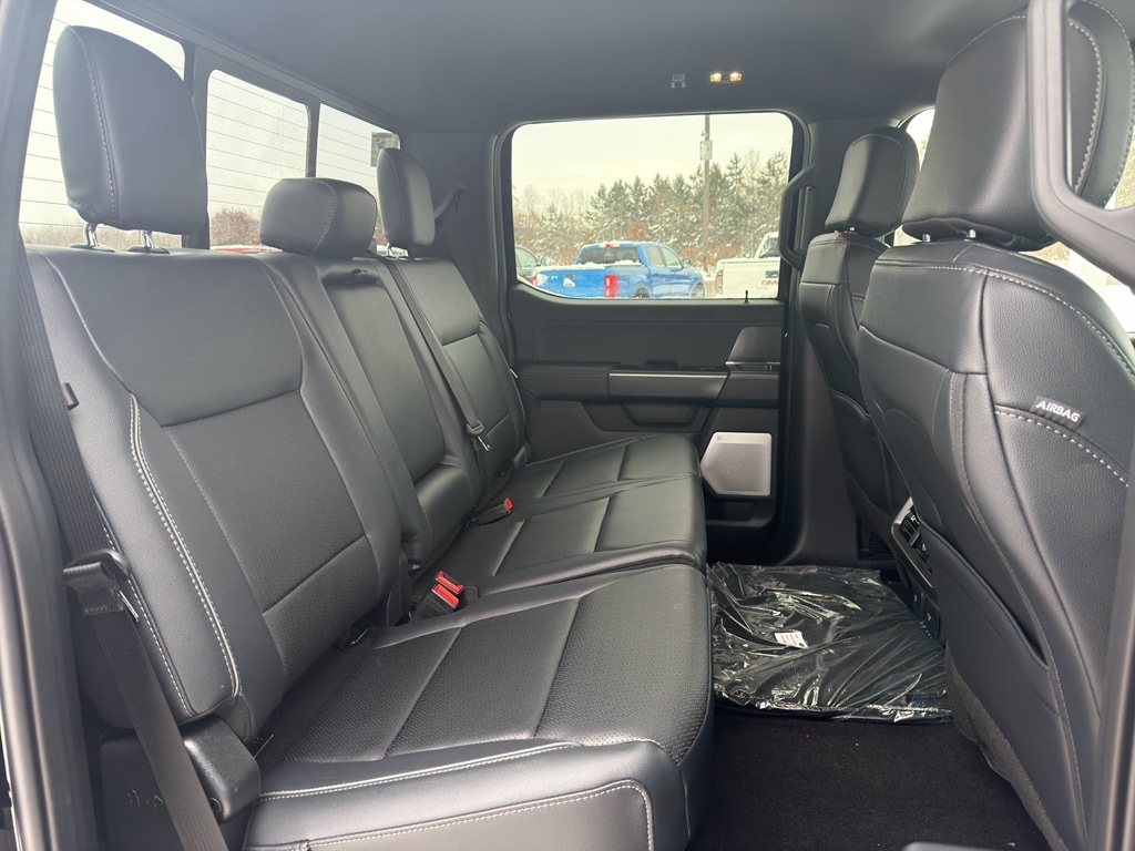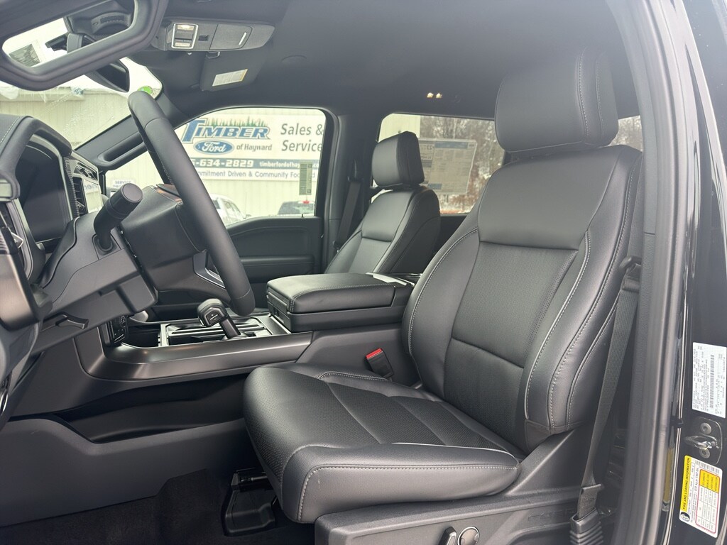 Lariat Black Appearance Package: Black Grille; ActiveX Trimmed Bucket Seats; Black Exterior Badging; Gray Box Side Decal; Body-Color Front and Rear Bumpers; Body-Color Skull Caps and Door Handles; Black Taillamp Bezels; Matte Black Tailgate F-150 Decal; Dark Interior Appliques. Equipment Group 502A High: Ambient Lighting - Ice Blue Color Only; B&O Unleashed Sound System by Bang & Olufsen Radio; 2nd Row Heated Seats; 6 Extended Angular Bright Anodized Step Bar; Power-Sliding Rear Window; Heads-Up Display; Illuminated Driver and Passenger Visors; 275/60R20 All-Terrain Tires. Mobile Office Package: Wireless Charging; Partitioned Lockable Rear Storage; Console Worksurface. Tow/haul Package: Integrated Trailer Brake Controller; Electronic Locking with 3.73 Axle Ratio. Electronic Locking with 3.73 Axle Ratio. BlueCruise Equipped (1year Plan). **Equipment listed is based on original vehicle build and subject to change. Please confirm the accuracy of the included equipment by calling the dealer prior to purchase.**