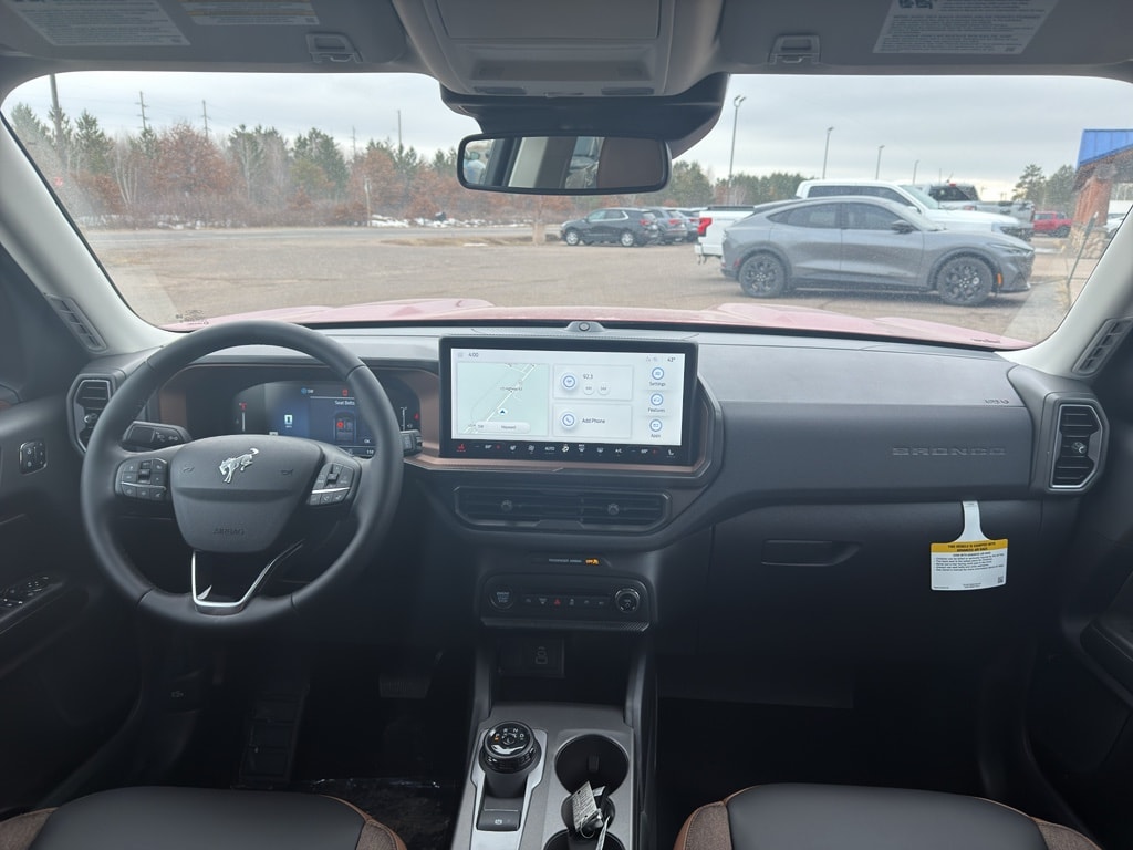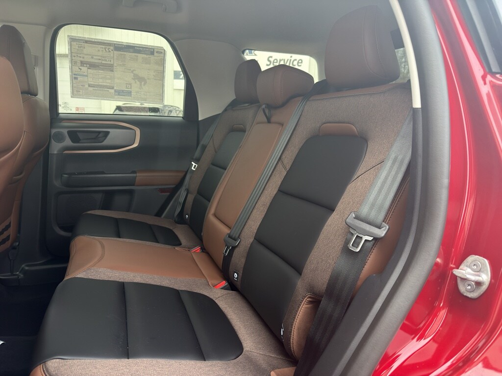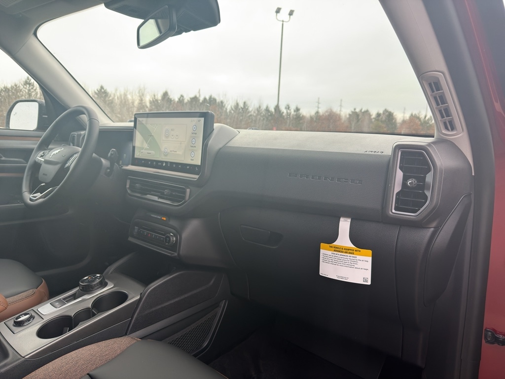 When you encounter slick or muddy roads, you can engage the four wheel drive on this mid-size suv and drive with confidence. The vehicle has automated speed control that adjusts to maintain a safe following distance, enhancing highway driving convenience. The Ford Bronco Sport offers Android Auto for seamless smartphone integration. This unit offers Apple CarPlay for seamless connectivity. This model keeps you comfortable with Auto Climate. It has an automatic transmission. Protect this model from unwanted accidents with a cutting edge backup camera system. Set the temperature exactly where you are most comfortable in the vehicle. The fan speed and temperature will automatically adjust to maintain your preferred zone climate. Easily set your speed in the vehicle with a state of the art cruise control system. Increase or decrease velocity with the touch of a button. Electronic Stability Control is one of many advanced safety features on this mid-size suv. The Ford Bronco Sport has a 3 Cyl, 1.5L high output engine. Enjoy the tried and true gasoline engine in this 2026 Ford Bronco Sport . The Ford Bronco Sport features a hands-free Bluetooth phone system. This model is pure luxury with a heated steering wheel. The leather seats in this model are a must for buyers looking for comfort, durability, and style. With the adjustable lumbar support in this 2026 Ford Bronco Sport your back will love you. This mid-sized SUV is perfect for your next adventure. The state of the art park assist system will guide you easily into any spot. This vehicle gleams with a flashy red exterior. Never get into a cold vehicle again with the remote start feature on this Ford Bronco Sport.