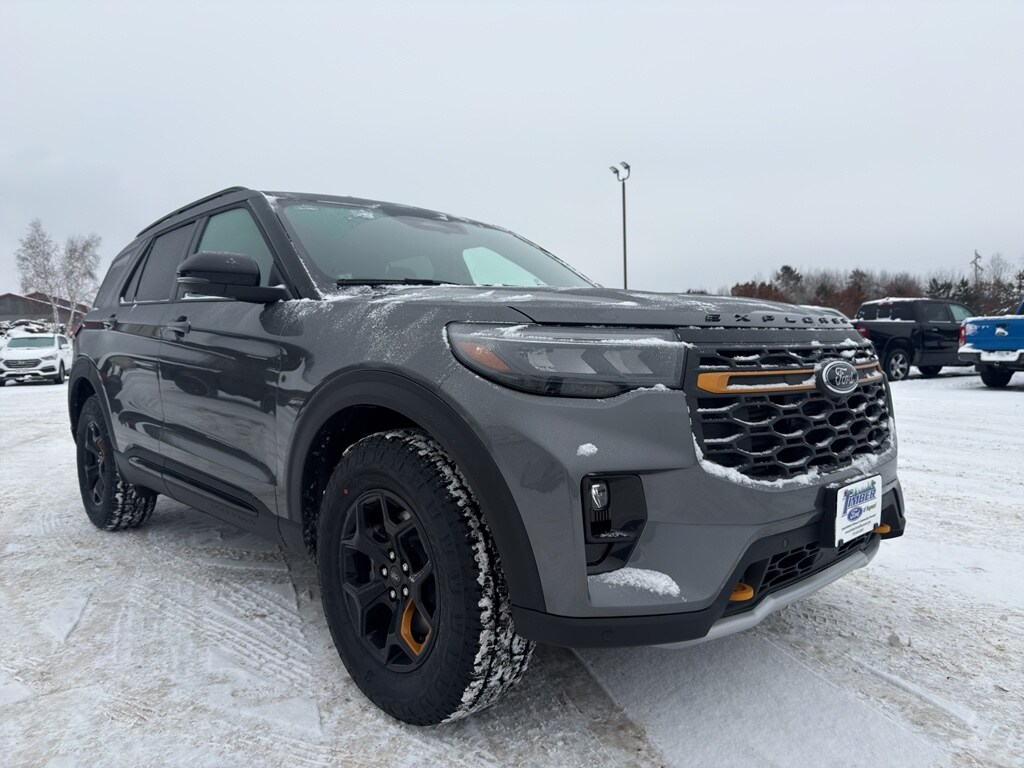 Enough room to carry all your cargo, passengers and equipment on a long road trip. Offering a ride height that is above most other vehicles, this unit has great visibility on the road. This model has four wheel drive capabilities. The Ford Explorer has automated speed control that adjusts to maintain a safe following distance, enhancing highway driving convenience. It offers Android Auto for seamless smartphone integration. The vehicle offers Apple CarPlay for seamless connectivity. This Ford Explorer has an automatic transmission. Protect this model from unwanted accidents with a cutting edge backup camera system. Maintaining a stable interior temperature in this Ford Explorer is easy with the climate control system. This model features cruise control for long trips. This 2026 Ford Explorer has a 4 Cyl, 2.3L high output engine. It is equipped with a gasoline engine. This unit projects refinement with a racy metallic gray exterior. It features a hands-free Bluetooth phone system. This vehicle is pure luxury with a heated steering wheel. The leather seats in this 2026 Ford Explorer are a must for buyers looking for comfort, durability, and style. Help alleviate lower back pain with the driver seat lumbar support in this unit. The installed navigation system will keep you on the right path. Load groceries and much more with ease into it thanks to the power liftgate. Start this model from inside with remote start.