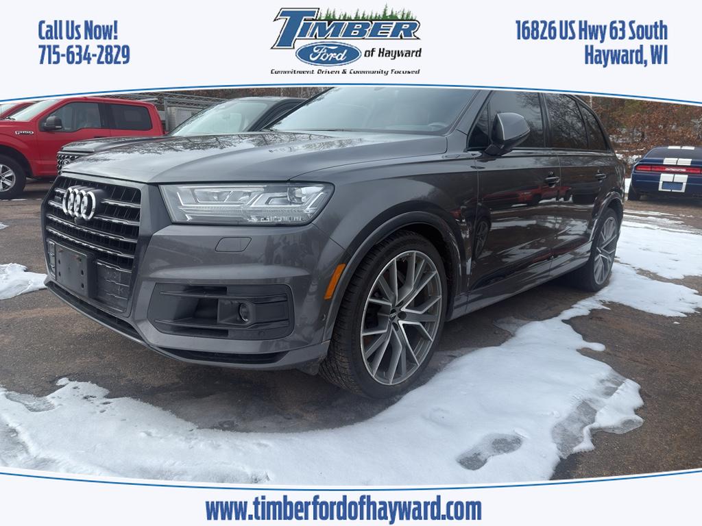Carry lots of cargo while your passengers are comfortable. This vehicle comes with third row seating for extra passengers. Anti-lock brakes will help you stop in an emergency. The vehicle has automated speed control that adjusts to maintain a safe following distance, enhancing highway driving convenience. This Audi Q7 is equipped with all wheel drive. The vehicle comes equipped with Android Auto for seamless smartphone integration on the road. Apple CarPlay: Seamless smartphone integration for the Audi Q7 - stay connected and entertained on the go! The Audi Q7 offers Automatic Climate Control for personalized comfort. This 2019 Audi Q7 has an automatic transmission. The Audi Q7 features a high end BOSE stereo system. See what's behind you with the back up camera on this 2019 Audi Q7 . Our dealership has already run the CARFAX report and it is clean. A clean CARFAX is a great asset for resale value in the future. Maintaining a stable interior temperature in this 2019 Audi Q7 is easy with the climate control system. Easily set your speed in the Audi Q7 with a state of the art cruise control system. Increase or decrease velocity with the touch of a button. This Audi Q7 has a V6, 3.0L high output engine. This Audi Q7 is equipped with a gasoline engine. This vehicle emanates grace with its stylish gray exterior. This vehicle features a hands-free Bluetooth phone system. It features a HomeLink System. The leather seats in this 2019 Audi Q7 are a must for buyers looking for comfort, durability, and style. With the adjustable lumbar support in this unit your back will love you. You'll never again be lost in a crowded city or a country region with the navigation system on the Audi Q7. Enjoy the convenience of the power liftgate on this model. The Audi Q7 looks aggressive with a streamlined rear spoiler. It is built for driving comfort with a telescoping wheel.