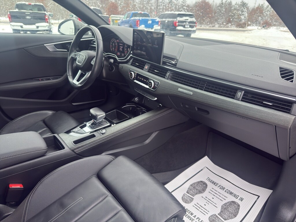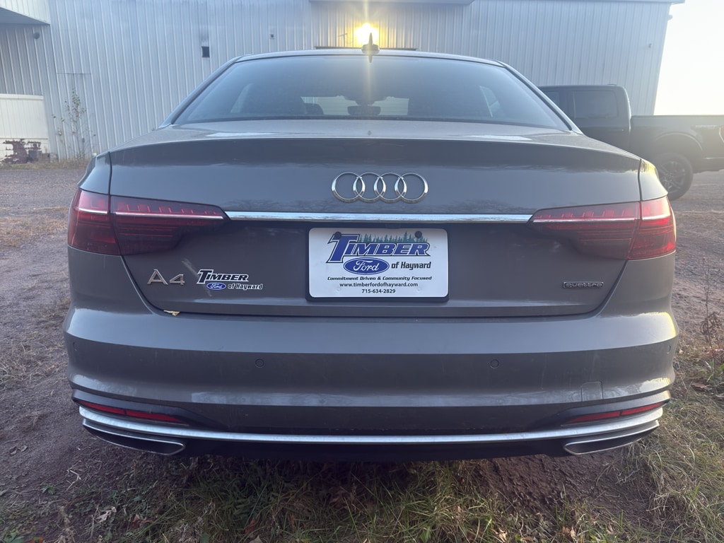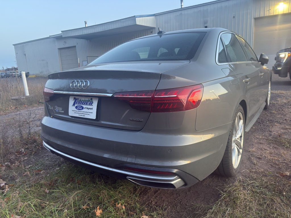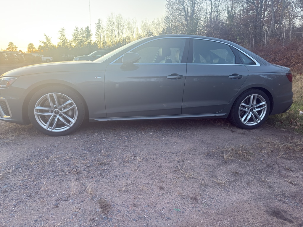 Anti-lock brakes are standard on this 2023 Audi A4 . This 2023 Audi A4 has automated speed control that adjusts to maintain a safe following distance, enhancing highway driving convenience. Conquer any rainy, snowy, or icy road conditions this winter with the all wheel drive system on this 2023 Audi A4 . It comes equipped with Android Auto for seamless smartphone integration on the road. This Audi A4 offers Apple CarPlay for seamless connectivity. This model keeps you comfortable with Auto Climate. This model has an automatic transmission. See what's behind you with the back up camera on the vehicle. The vehicle has a clean CARFAX vehicle history report. Set the temperature exactly where you are most comfortable in this small car. The fan speed and temperature will automatically adjust to maintain your preferred zone climate. Easily set your speed in the Audi A4 with a state of the art cruise control system. Increase or decrease velocity with the touch of a button. The Electronic Stability Control will keep you on your intended path. The Audi A4 has a 4 Cyl, 2.0L high output engine. Enjoy the tried and true gasoline engine in the vehicle. This Audi A4 projects refinement with a racy metallic gray exterior. This 2023 Audi A4 features a hands-free Bluetooth phone system. The vehicle is pure luxury with a heated steering wheel. This unit features a HomeLink System. Quickly unlock this 2023 Audi A4 with keyless entry. The leather seats in the vehicle are a must for buyers looking for comfort, durability, and style. With the adjustable lumbar support in this vehicle your back will love you. The state of the art park assist system will guide you easily into any spot. Small and nimble the Audi A4 scoots through traffic. It offers great fuel mileage and ease of parking. This Audi A4 has an adjustable telescoping wheel that allows you to achieve a perfect fit for your driving comfort. This small car is equipped with the latest generation of XM/Sirius Radio.
