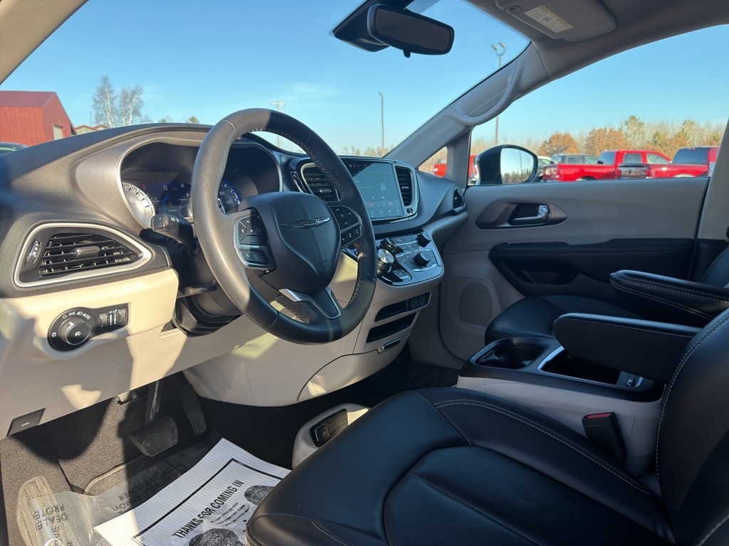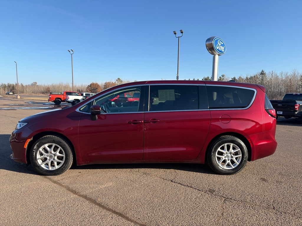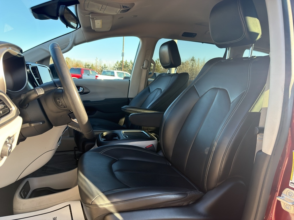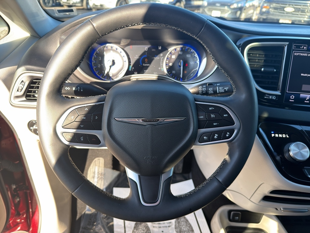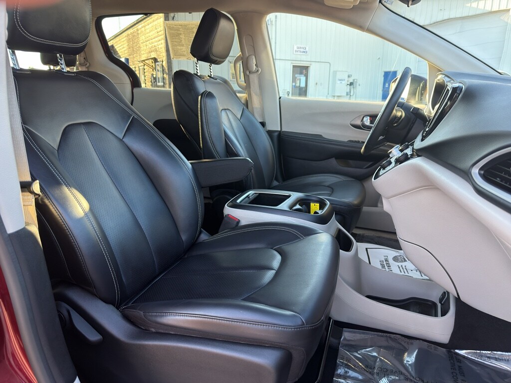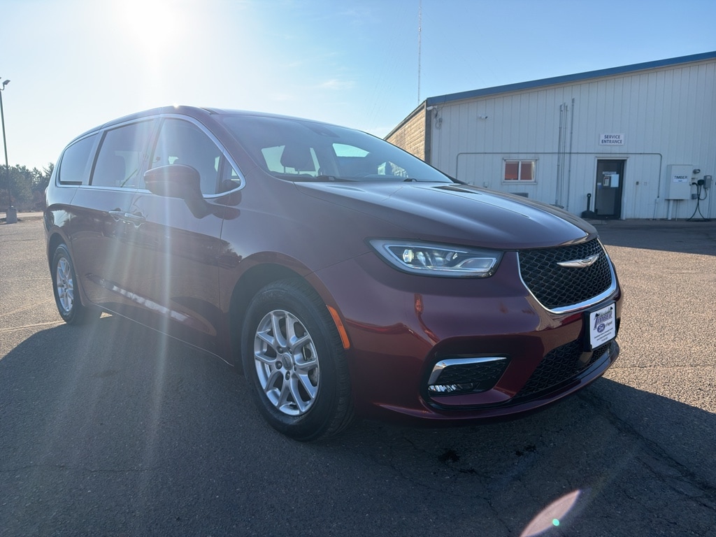 The Chrysler Pacifica has automated speed control that adjusts to maintain a safe following distance, enhancing highway driving convenience. This mini van comes equipped with Android Auto for seamless smartphone integration on the road. The vehicle offers Apple CarPlay for seamless connectivity. The vehicle keeps you comfortable with Auto Climate. It has an automatic transmission. Protect this 2023 Chrysler Pacifica from unwanted accidents with a cutting edge backup camera system. Good News! This certified CARFAX 1-owner vehicle has only had one owner before you. This mini van has a clean CARFAX vehicle history report. Maintaining a stable interior temperature in this model is easy with the climate control system. This vehicle features cruise control for long trips. Electronic Stability Control is one of many advanced safety features on this mini van. The vehicle has a V6, 3.6L high output engine. This model has fog lights for all weather conditions. This model's Forward Collision Warning system alerts the driver to potential front-end collisions, enhancing safety. This unit is front wheel drive. The vehicle is equipped with a gasoline engine. Bluetooth technology is built into this 2023 Chrysler Pacifica , keeping your hands on the steering wheel and your focus on the road. Keep your hands warm all winter with a heated steering wheel in this Chrysler Pacifica . Quickly unlock this Chrysler Pacifica with keyless entry. This Chrysler Pacifica's Lane Departure Warning helps keep you in your lane. The leather seats in this unit are a must for buyers looking for comfort, durability, and style. Help alleviate lower back pain with the driver seat lumbar support in it. This minivan provides a lot of room for passengers. Long family road trips will not only be comfortable, but fun. Load groceries and much more with ease into this unit thanks to the power liftgate. The state of the art park assist system will guide you easily into any spot. This unit gleams with a flashy red exterior. Never get into a cold vehicle again with the remote start feature on this 2023 Chrysler Pacifica .