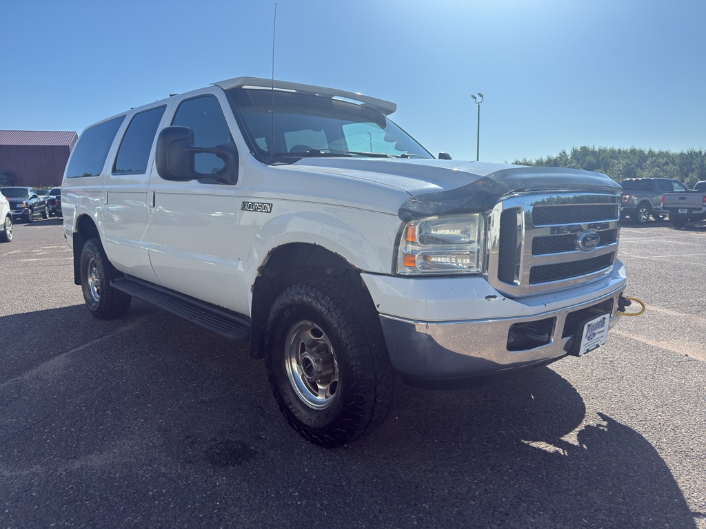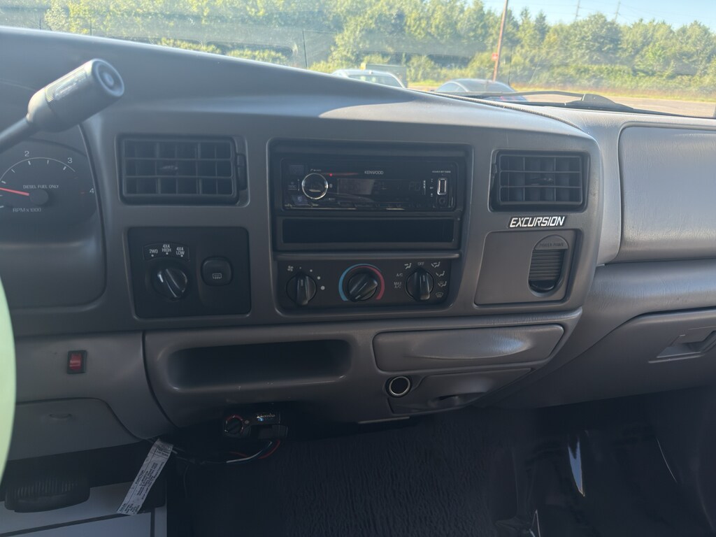 This three-quarter ton SUV is one of the largest SUVs you can buy. When you encounter slick or muddy roads, you can engage the four wheel drive on this vehicle and drive with confidence. Anti-lock brakes are standard on this vehicle. This 3/4 ton suv has an automatic transmission. The Ford Excursion has a clean CARFAX vehicle history report. Maintaining a stable interior temperature in this 3/4 ton suv is easy with the climate control system. This unit features cruise control for long trips. With a diesel engine you will be pleased with the power, torque, and fuel efficiency gains. This vehicle has a V8, 7.3L high output engine. Help alleviate lower back pain with the driver seat lumbar support in this Ford Excursion. The vehicle is outfitted with a Powerstroke diesel engine This 3/4 ton suv embodies class and sophistication with its refined white exterior.