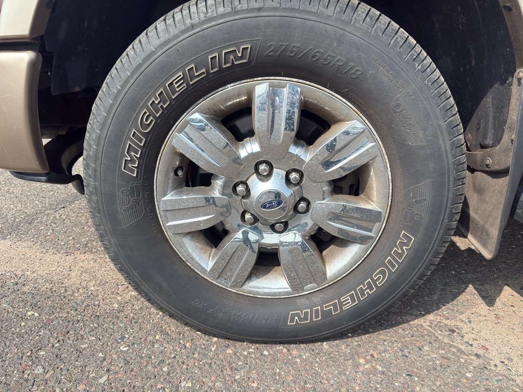 Lariat Chrome Package: 6 Chrome Angular Running Boards; Body-Color Door Handles with Chrome Strap; Heated Power Side Mirrors with Memory; Chrome Exhaust Tip Lariat Plus Package Order Code 508A: AM/FM Stereo/clock/single CD Radio; 5.0L V8 Flex Fuel Engine; Electronic 6-Speed Automatic Transmission; 7 200 lbs Payload Package GVWR; P275/65R18 OWL A/T (4) Tires; 18 Bright Aluminum Wheels Leather-Trimmed Bucket Seats 6 Chrome Angular Running Boards Limited Slip with 3.55 Axle Ratio **Equipment listed is based on original vehicle build and subject to change. Please confirm the accuracy of the included equipment by calling the dealer prior to purchase.**