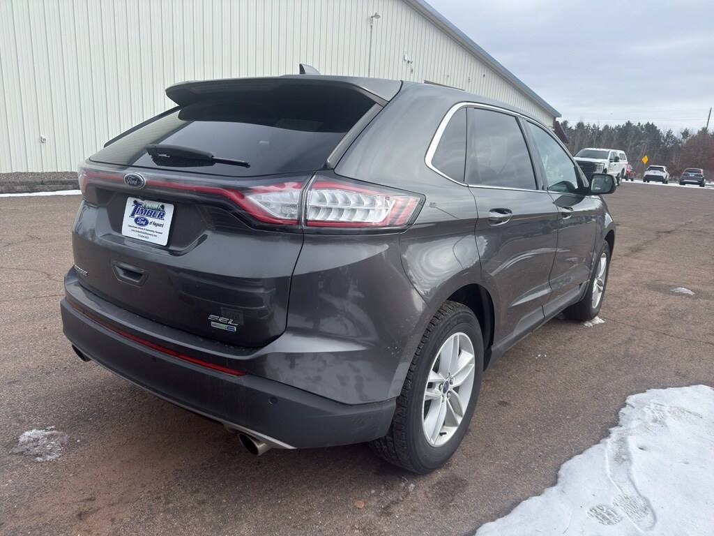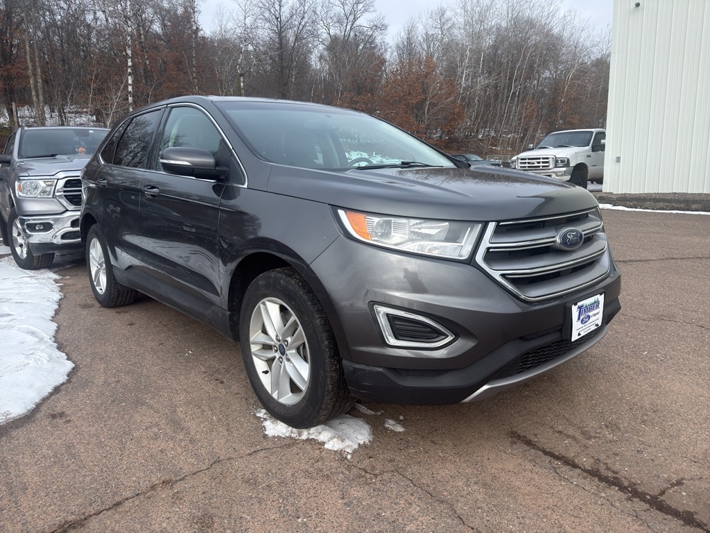 This Ford Edge is equipped with all wheel drive. This mid-size suv offers Automatic Climate Control for personalized comfort. The high efficiency automatic transmission shifts smoothly and allows you to relax while driving. Protect the vehicle from unwanted accidents with a cutting edge backup camera system. Our dealership has already run the CARFAX report and it is clean. A clean CARFAX is a great asset for resale value in the future. Set the temperature exactly where you are most comfortable in this mid-size suv. The fan speed and temperature will automatically adjust to maintain your preferred zone climate. This unit features cruise control for long trips. Electronic Stability Control is one of many advanced safety features on the Ford Edge. The vehicle has a 4 Cyl, 2.0L high output engine. The Ford Edge is equipped with a gasoline engine. This 2017 Ford Edge emanates grace with its stylish gray exterior. Bluetooth technology is built into it, keeping your hands on the steering wheel and your focus on the road. The leather seats in the vehicle are a must for buyers looking for comfort, durability, and style. Help alleviate lower back pain with the driver seat lumbar support in this unit. The spacious cabin accommodates your family and friends in comfort. Take it to the mountains or the beach. the Ford Edge can handle it all. The state of the art park assist system will guide you easily into any spot.