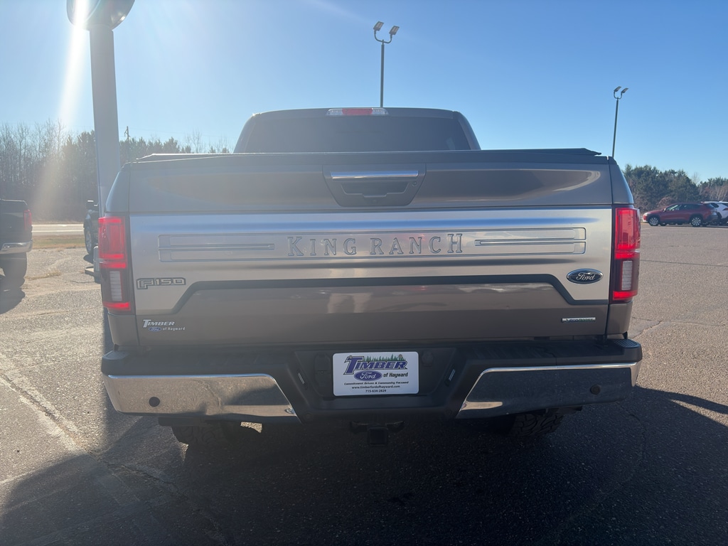King Ranch Chrome Appearance Package: Chrome Door Handles with Body-Color Strap; Chrome Front and Rear Bumpers; Bright Belt Moldings; P275/55R20 OWL A/T Tires; 20 Chrome-Like PVD Wheels; Chrome Skull Caps on Exterior Mirrors Equipment Group 601A Luxury: Electronic 10-Speed Automatic Transmission; Power-Deployable Running Boards; 7 000 lbs Payload Package GVWR; King Ranch Leather Bucket Seats; B&O Sound System by Bang and Olufsen; Tailgate Step with Tailgate Lift Assist; P275/55R20 OWL A/T Tires; Inflatable Rear Safety Belts; Blind Spot Information System (BLIS); Multi-Contour Driver and Passenger Seats Max Trailer Tow Package: Pro Trailer Backup Assist; Integrated Trailer Brake Controller; Electronic Locking with 3.55 Axle Ratio; Class IV Trailer Hitch Receiver; Extended Range 36 Gallon Fuel Tank; Engine Oil Cooler; Upgraded Front Stabilizer Bar King Ranch Monochromatic Paint Package: Painted Body-Color Wheellip Molding Tough Bed Spray-In Bedliner Electronic Locking with 3.55 Axle Ratio Extended Range 36 Gallon Fuel Tank Tailgate Step with Tailgate Lift Assist **Equipment listed is based on original vehicle build and subject to change. Please confirm the accuracy of the included equipment by calling the dealer prior to purchase.**