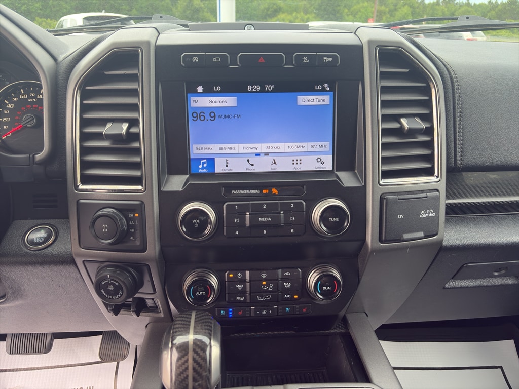 Equipment Group 802A Luxury: Electronic Locking with 4.10 Axle Ratio; 17 Cast Aluminum Wheels; Electronic 10-Speed Automatic Transmission; Power Tilt/telescoping Steering Column with Memory; 7 050 lbs Payload Package GVWR; Memory System (seat Pedal Exterior Mirror); Dual-Zone Electronic Automatic Temperature Control; Power Glass Heated Sideview Mirrors; Voice-Activated Touchscreen Navigation; Inflatable Rear Safety Belts; Remote Start System with Remote Tailgate Release; Blind Spot Information System (BLIS); Intelligent Access with Push-Button Start; Pro Trailer Backup Assist; 3.5L V6 EcoBoost High Output Engine; Ambient Lighting - Ice Blue Color Only; B&O Sound System by Bang and Olufsen; Advanced Security Pack; LED Sideview Mirror Spotlights; Tailgate Applique Ford; Integrated Trailer Brake Controller; LED Box Lighting; 360 Degree Camera; Power-Sliding Rear Window; LT315/70R17 BSW A/T Tires; Power-Adjustable Pedals; 4.10 Front Axle with Torsen Differential; Universal Garage Door Opener; Heated Steering Wheel; 8 Productivity Screen Raptor Technology Package: Rain-Sensing Windshield Wipers; Lane Keeping System with Alert and Assist; Adaptive Cruise Control with Stop-And-Go Raptor Carbon Fiber Package: Unique High Gloss Black Carbon Fiber Shift Knob Twin Panel Moonroof Raptor Exterior Graphics Package Raptor Hood Graphics Package Voice-Activated Touchscreen Navigation Blind Spot Information System (BLIS) 4.10 Front Axle with Torsen Differential Pro Trailer Backup Assist Tailgate Step with Tailgate Lift Assist 360 Degree Camera Power Glass Heated Sideview Mirrors Integrated Trailer Brake Controller Foldable Pickup Box Bed Extender Inflatable Rear Safety Belts LED Sideview Mirror Spotlights LED Box Lighting Second-Row Heated Seats **Equipment listed is based on original vehicle build and subject to change. Please confirm the accuracy of the included equipment by calling the dealer prior to purchase.**