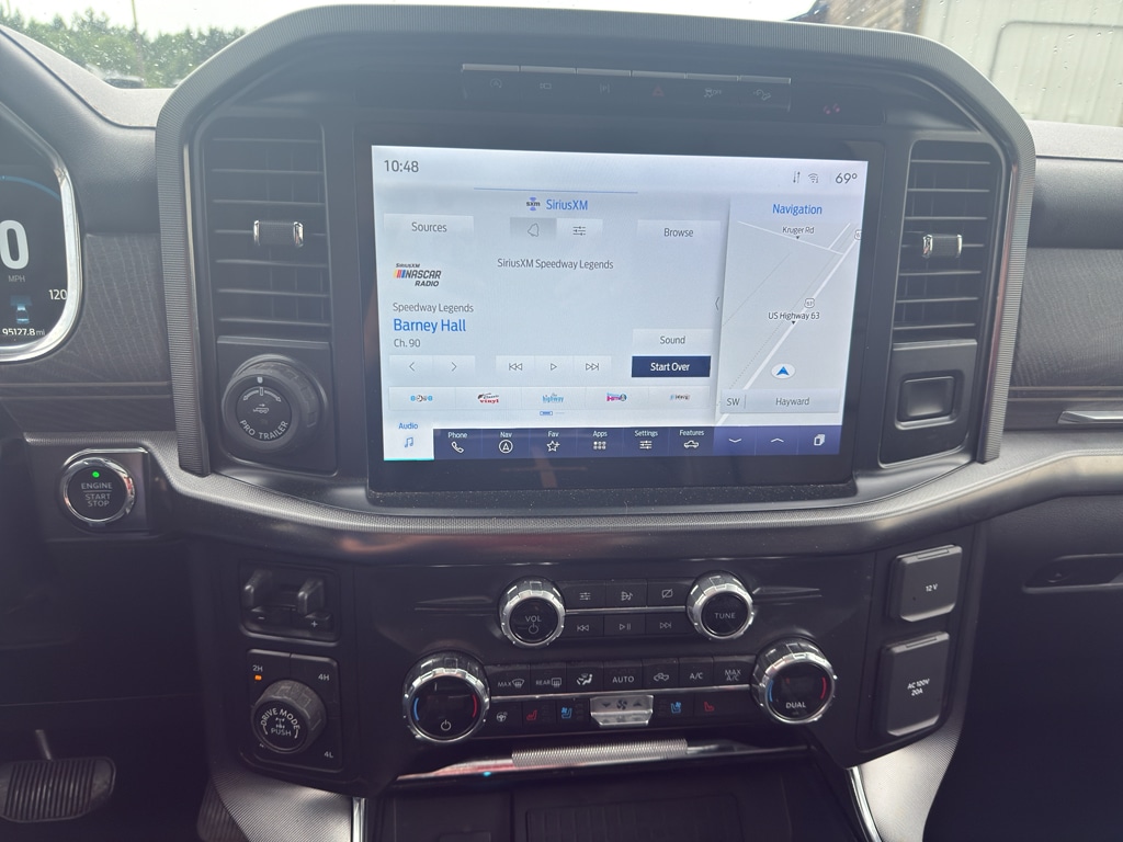 Half ton trucks are the most functional trucks for all purposes. This unit has four wheel drive capabilities. Anti-lock brakes will help you stop in an emergency. This vehicle has automated speed control that adjusts to maintain a safe following distance, enhancing highway driving convenience. This 1/2 ton pickup has adjustable pedals that are luxurious and safety conscious. This Ford F-150 comes equipped with Android Auto for seamless smartphone integration on the road. Apple CarPlay: Seamless smartphone integration for this Ford F-150 - stay connected and entertained on the go! This Ford F-150 has an automatic transmission. Protect this model from unwanted accidents with a cutting edge backup camera system. The Ford F-150 is painted with a sleek and sophisticated black color. This vehicle is a certified CARFAX 1-owner. Our dealership has already run the CARFAX report and it is clean. A clean CARFAX is a great asset for resale value in the future. Maintaining a stable interior temperature in the Ford F-150 is easy with the climate control system. Easily set your speed in the vehicle with a state of the art cruise control system. Increase or decrease velocity with the touch of a button. The Ford F-150 has a V6, 3.5L high output engine. This Ford F-150 is equipped with a gasoline engine. Bluetooth technology is built into the vehicle, keeping your hands on the steering wheel and your focus on the road. The vehicle is pure luxury with a heated steering wheel. The leather seats in the Ford F-150 are a must for buyers looking for comfort, durability, and style. Help alleviate lower back pain with the driver seat lumbar support in the Ford F-150. You'll never again be lost in a crowded city or a country region with the navigation system on this vehicle. An off-road package is equipped on this model. This 2021 Ford F-150 comes with running boards already installed. The Ford F-150 has an adjustable telescoping wheel that allows you to achieve a perfect fit for your driving comfort. A trailer braking system is already installed on this Ford F-150.
