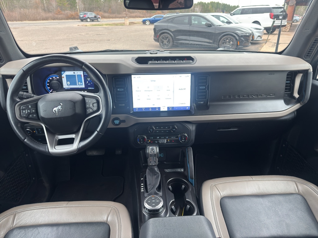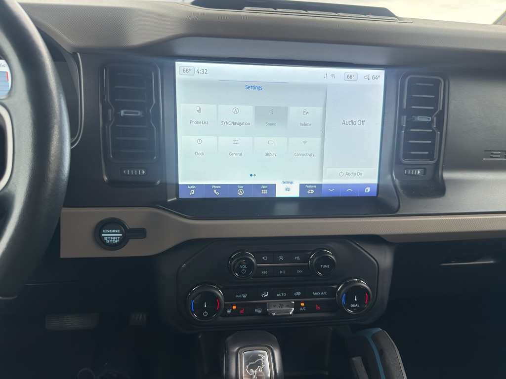 Protect this vehicle from unwanted accidents with a cutting edge backup camera system. Our dealership has already run the CARFAX report and it is clean. A clean CARFAX is a great asset for resale value in the future. Never get into a cold vehicle again with the remote start feature on this vehicle. It has auto-adjust speed for safe following. The rear parking assist technology on this 2022 Ford Bronco Advanced will put you at ease when reversing. The system alerts you as you get closer to an obstruction. This 2022 Ford Bronco Advanced's Cross-Traffic Alert: Safeguarding you from unexpected traffic when reversing. This 1/2 ton suv is pure luxury with a heated steering wheel. The Ford Bronco is equipped with the latest generation of XM/Sirius Radio. Apple CarPlay: Seamless smartphone integration for the Ford Bronco - stay connected and entertained on the go! This vehicle features a hands-free Bluetooth phone system.