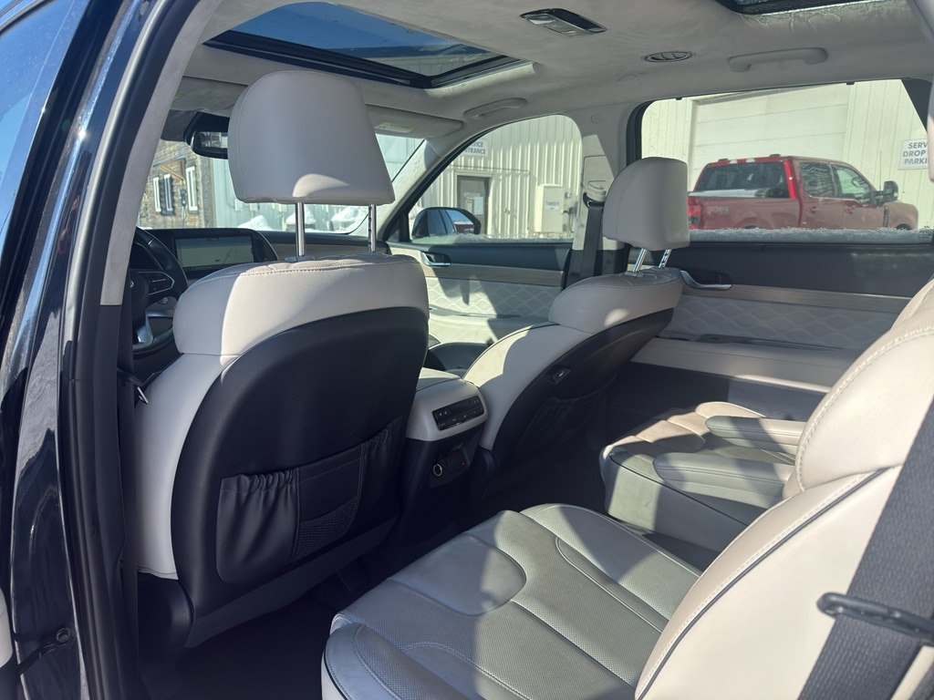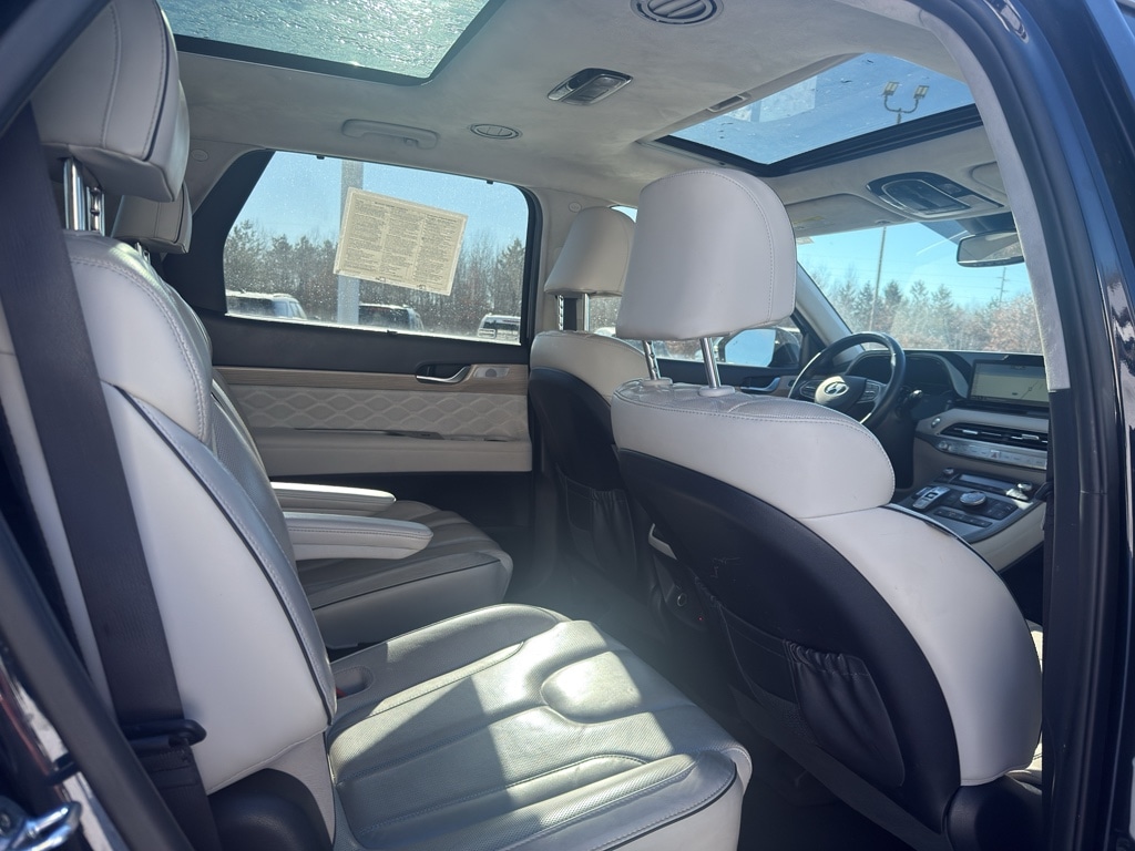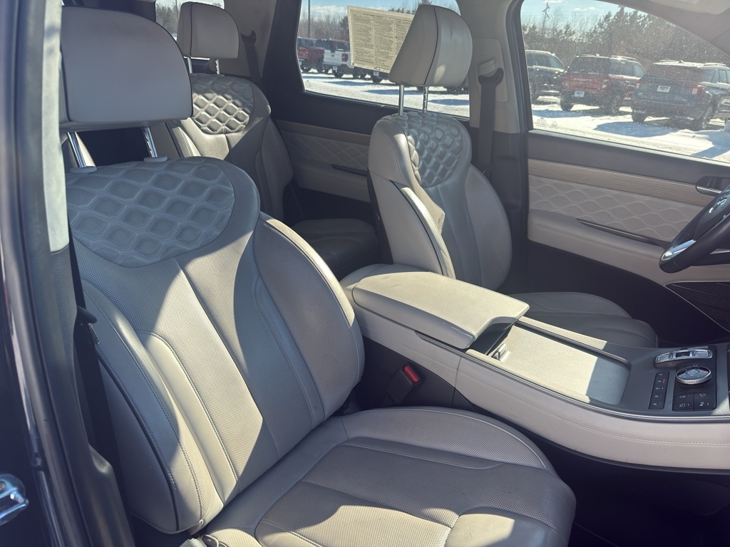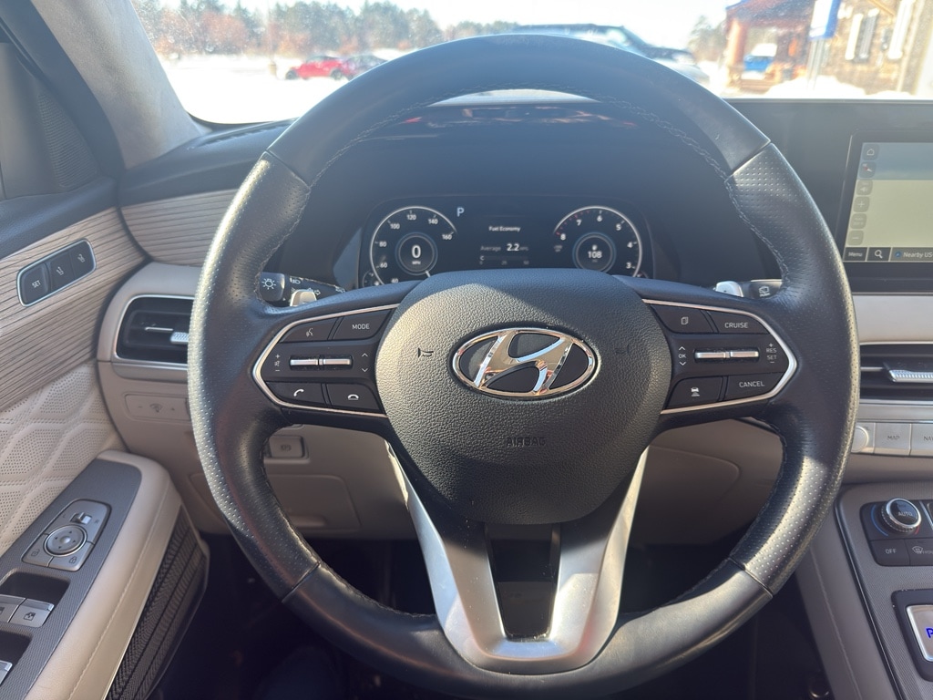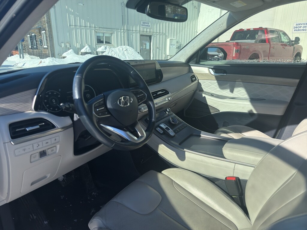 Enough room to carry all your cargo, passengers and equipment on a long road trip. Offering a ride height that is above most other vehicles, the Hyundai Palisade has great visibility on the road. The Hyundai Palisade is equipped with all wheel drive. The vehicle comes equipped with Android Auto for seamless smartphone integration on the road. The vehicle offers Apple CarPlay for seamless connectivity. This Hyundai Palisade keeps you comfortable with Auto Climate. The high efficiency automatic transmission shifts smoothly and allows you to relax while driving. See what's behind you with the back up camera on this 1/2 ton suv. This 1/2 ton suv shines with an exquisite blue finish. Our dealership has already run the CARFAX report and it is clean. A clean CARFAX is a great asset for resale value in the future. Set the temperature exactly where you are most comfortable in this 1/2 ton suv. The fan speed and temperature will automatically adjust to maintain your preferred zone climate. Easily set your speed in it with a state of the art cruise control system. Increase or decrease velocity with the touch of a button. The Electronic Stability Control will keep you on your intended path. This Hyundai Palisade has a V6, 3.8L high output engine. Enjoy the tried and true gasoline engine in this Hyundai Palisade. This Hyundai Palisade features a hands-free Bluetooth phone system. Keep your hands warm all winter with a heated steering wheel in it . Quickly unlock this unit with keyless entry. Lane Keep Assist in the Hyundai Palisade helps maintain safe driving by gently steering to stay within the lane. The leather seats in the Hyundai Palisade are a must for buyers looking for comfort, durability, and style. Help alleviate lower back pain with the driver seat lumbar support in the vehicle. The installed navigation system will keep you on the right path. Load groceries and much more with ease into this model thanks to the power liftgate. Start this vehicle from inside with remote start.