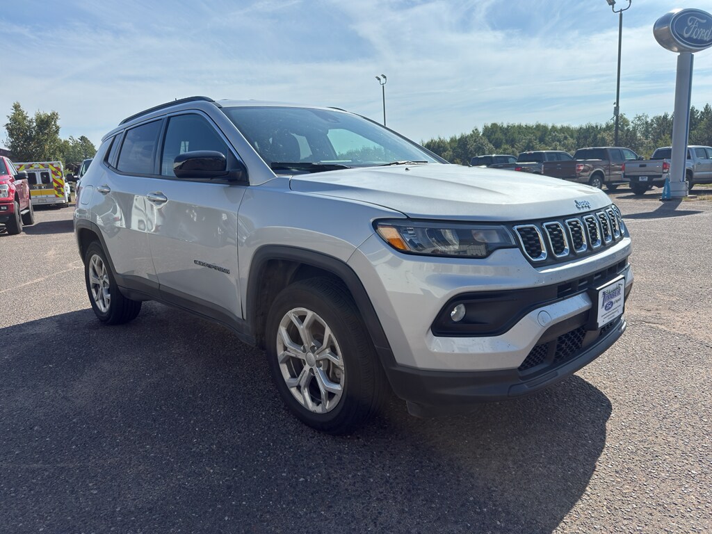 When you encounter slick or muddy roads, you can engage the four wheel drive on the vehicle and drive with confidence. This Jeep Compass offers Android Auto for seamless smartphone integration. This vehicle offers Apple CarPlay for seamless connectivity. This model has an automatic transmission. Protect this Jeep Compass from unwanted accidents with a cutting edge backup camera system. This vehicle is a certified CARFAX 1-owner. Our dealership has already run the CARFAX report and it is clean. A clean CARFAX is a great asset for resale value in the future. Easily set your speed in this unit with a state of the art cruise control system. Increase or decrease velocity with the touch of a button. Electronic Stability Control is one of many advanced safety features on the vehicle. This mid-size suv has a 4 Cyl, 2.0L high output engine. The fog lights cut through the weather so you can see what's ahead. This Jeep Compass's Forward Collision Warning feature alerts drivers to potential front-end collisions. This vehicle is equipped with a gasoline engine. Bluetooth technology is built into it, keeping your hands on the steering wheel and your focus on the road. This mid-sized SUV is perfect for your next adventure. Start this 2024 Jeep Compass from inside with remote start. It gleams with an elegant silver clear coated finish.