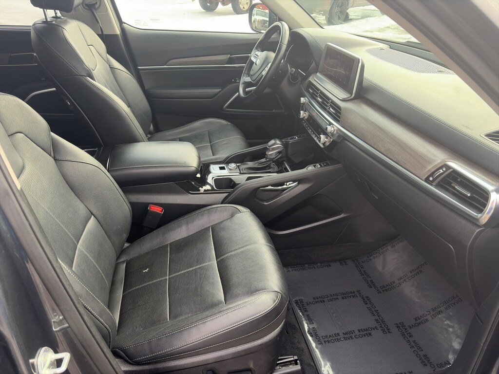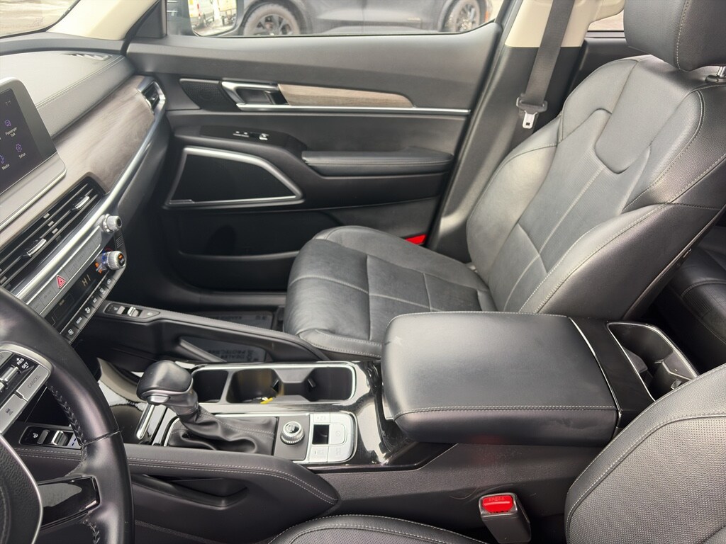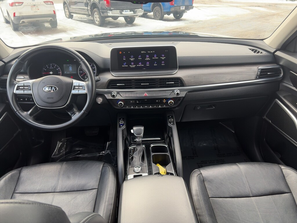 Carry lots of cargo while your passengers are comfortable. This 2021 Kia Telluride has a clean CARFAX vehicle history report. The Kia Telluride has a V6, 3.8L high output engine. Front wheel drive on this 2021 Kia Telluride gives you better traction and better fuel economy. It is equipped with a gasoline engine.