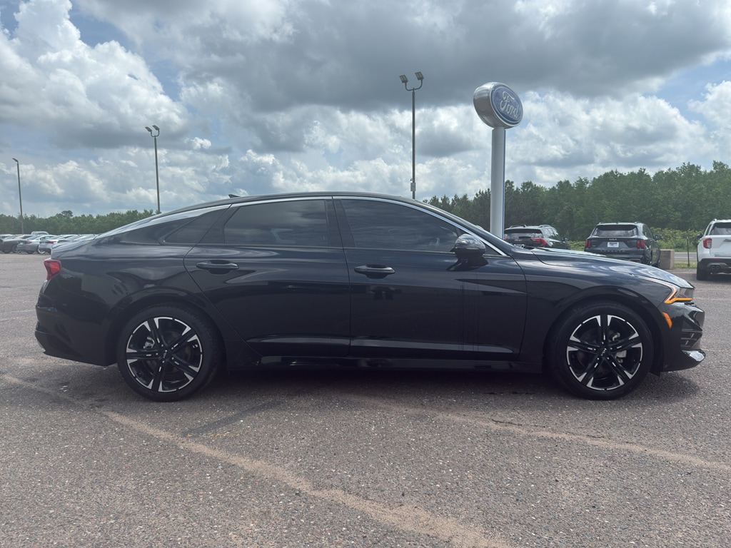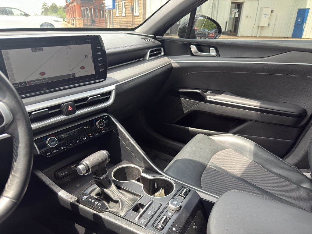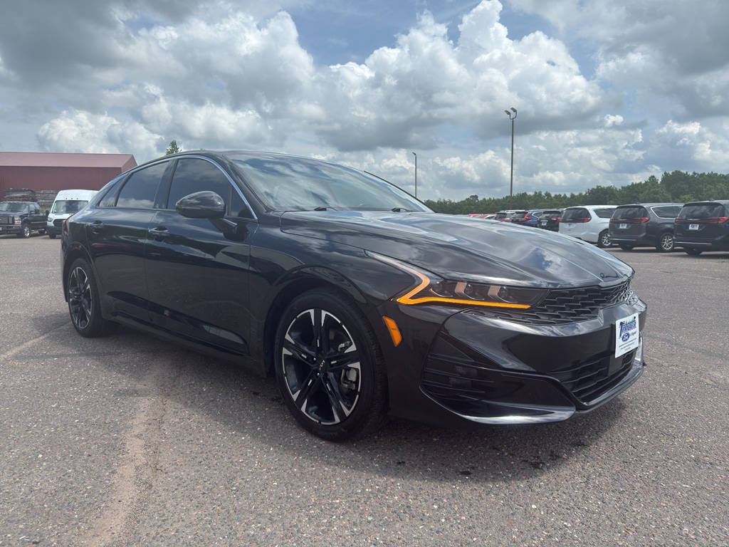 Just the right size to accommodate all your needs. It has room for passengers and plenty of trunk space. Conquer any rainy, snowy, or icy road conditions this winter with the all wheel drive system on this Kia K5. The Kia K5 offers Android Auto for seamless smartphone integration. This vehicle offers Apple CarPlay for seamless connectivity. It keeps you comfortable with Auto Climate. This mid-size car has an automatic transmission. See what's behind you with the back up camera on this vehicle. It has an elegant black exterior finish. This vehicle is a certified CARFAX 1-owner. Set the temperature exactly where you are most comfortable in this model. The fan speed and temperature will automatically adjust to maintain your preferred zone climate. This mid-size car utilizes collision avoidance to enhance safety by automatically detecting and evading potential accidents. Easily set your speed in the vehicle with a state of the art cruise control system. Increase or decrease velocity with the touch of a button. The Electronic Stability Control will keep you on your intended path. This mid-size car has a 4 Cyl, 1.6L high output engine. The Kia K5 has fog lights for all weather conditions. Enjoy the tried and true gasoline engine in this vehicle. Bluetooth technology is built into this mid-size car, keeping your hands on the steering wheel and your focus on the road. Keep your hands warm all winter with a heated steering wheel in this vehicle . Control your garage door with its built in HomeLink System. This vehicle's Lane Departure Warning helps keep you in your lane. The leather seats in this 2023 Kia K5 are a must for buyers looking for comfort, durability, and style. With the adjustable lumbar support in the vehicle your back will love you. The installed navigation system will keep you on the right path.