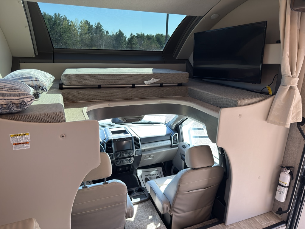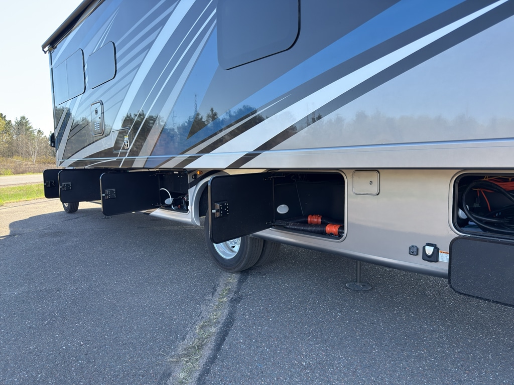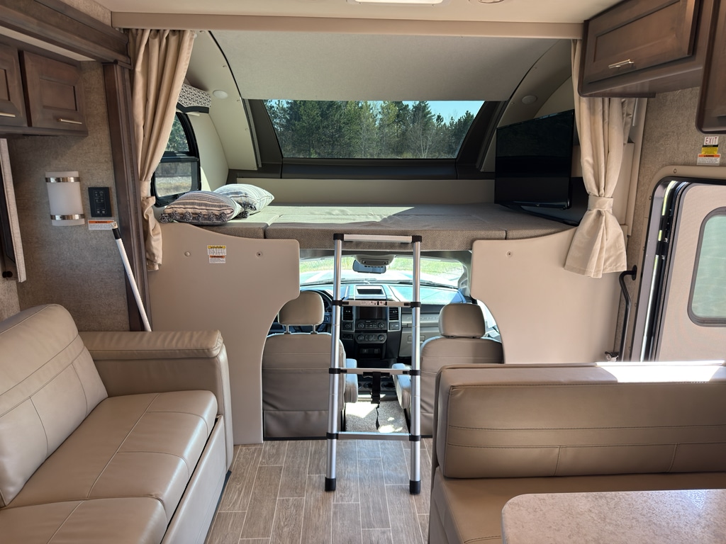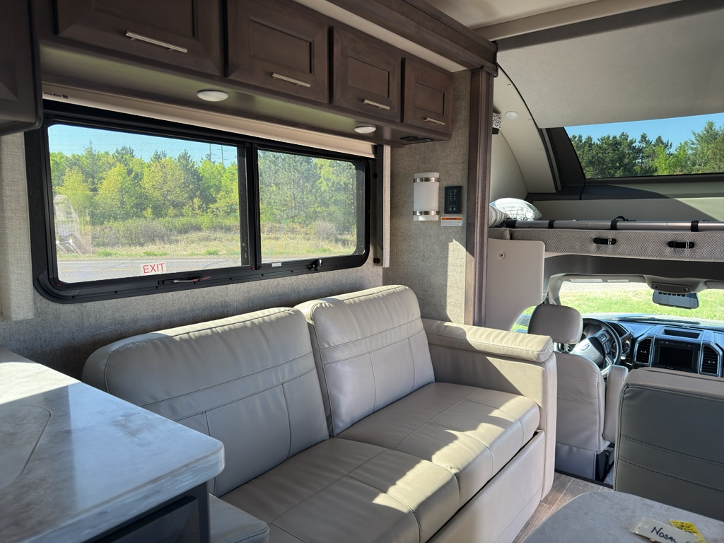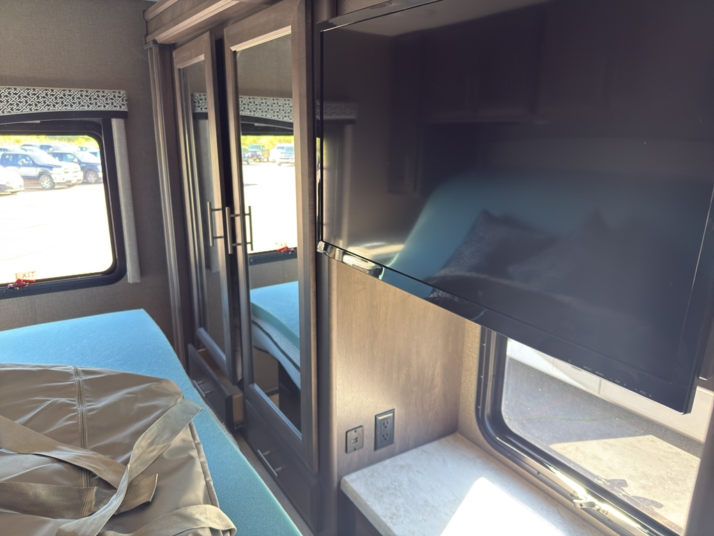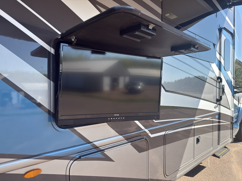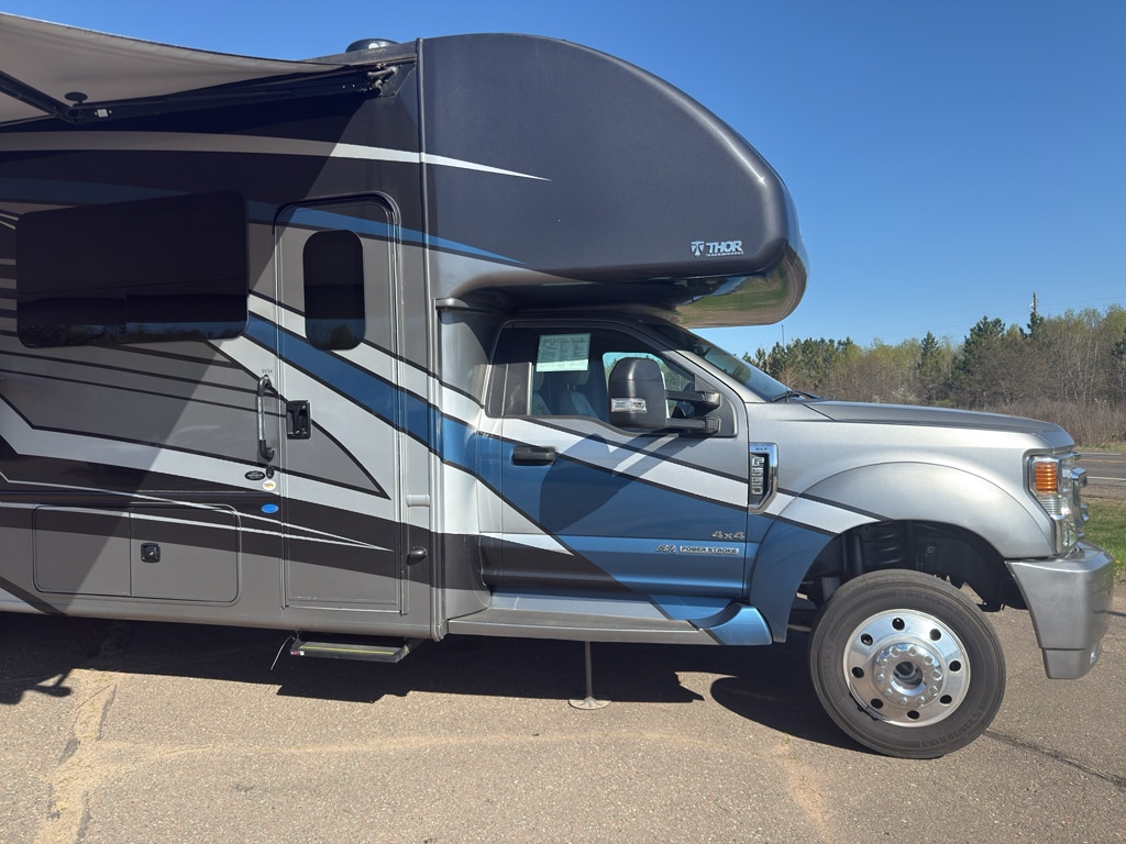 Thor Motor Coach with Full-Body paint package with Gel Coated Sidewalls, Automatic Leveling Jacks with Touchpad Controls, Rotocast Storage Compartments, Flush Mount Radius Luggage Doors, Power patio Awning with Integrated LED Lighting, Powered Sky View Shade in Cab Overhead, Slide out Room Awnings, Roof Ladder, Electric Entry Step, Automatic Courtesy Lights Over Cab Entry, Frameless Windows, 10,000-lb Trailer Hitch with 7-pin Round Connector, Fiberglass Running Boards, Residential Vinyl Flooring Throughout, 84 Interior Ceiling Height, Ceiling Ducted Air Conditioning System, Hardwood Veneer Paneling in Select Areas, Satin Finish Cabinetry with Solid Wood Flat Panel Cabinet Doors and Nickel Finish Hardware, Window Solar and Privacy Roller Shades in Living Room, Power Sky View Shade in Cab Overhead, Leatherette Dream Dinette Booth with Cup Holders, Pressed Laminate Countertops in Select Areas, Leatherette Theater Seating with Incliners and Footrests, Leatherette Sleeper Sofa, Stainless Steel Residential Refrigerator with Ice Maker, 2 Burner-High-Output Gas Range with Single Induction Cooktop, Stainless Steel 30 Over-the-Range Convection Microwave Oven, Solid Surface Countertops an Sink Covers, Under Countertop LED Accent Lighting, Decorative Tile Backsplash, Stainless Steel Double Bowl Sink with Single Handle Faucet and Pull-Down Sprayer, Pop-Up Countertop Outlet, Pantry, 12-volt High Capacity Power Vent with Cover, King Size Bed, Queen Size Bed, Tilt-A-View Inclining Bed Mechanism, Window Privacy Shades in Bedroom, Bunk Beds Convert to Closet, Shower with Obscure Glass Door, Stainless Steel Bathroom Sink, Foot Flush Porcelain Toilet, Macerator Toilet, Power Bath Vent, 39 TV on Manual Swivel in Cab-Over, 39 LED TV in Living Area, 32 TV in Bedroom, TV Prep in Bunk Beds, Exterior 32 TV on Manual Swivel with Sound Bar, Bluetooth Coach Radio System in Bedroom, Cable TV Ready, Digital TV Antenna, USB Charging Ports-Bedroom and Living Area, Exterior Kitchen with 2.5cu. ft. Refrigerator and Sink, Onan RV QD 6000 Diesel Generator, Automatic Generator Start, 50-am Detachable Shoreline Power Cord, Automatic Shoreline-to-Generator Transfer Switch, 1800-watt Inverter, Dual 13,500 BTU Roof Air Conditioners, Dual Auxiliary House Batteries with Battery Tray-Holds up to Four Batteries, Battery Disconnect Switch, 100-watt Solar Charging System with Solar Controller, Whole Coach Water Filtration System, Tankless Water Heater, Water Heater Bypass System, Enclosed Holding Tanks with Head Pads, Enclosed and Heated Holding Tanks, Black Tank Flush System, 360 Degree Siphon RV Holding Tank Vent Cap, Exterior LP Connection, Washer/Dryer Combo Prep, Outside Shower, Systems Control Center
