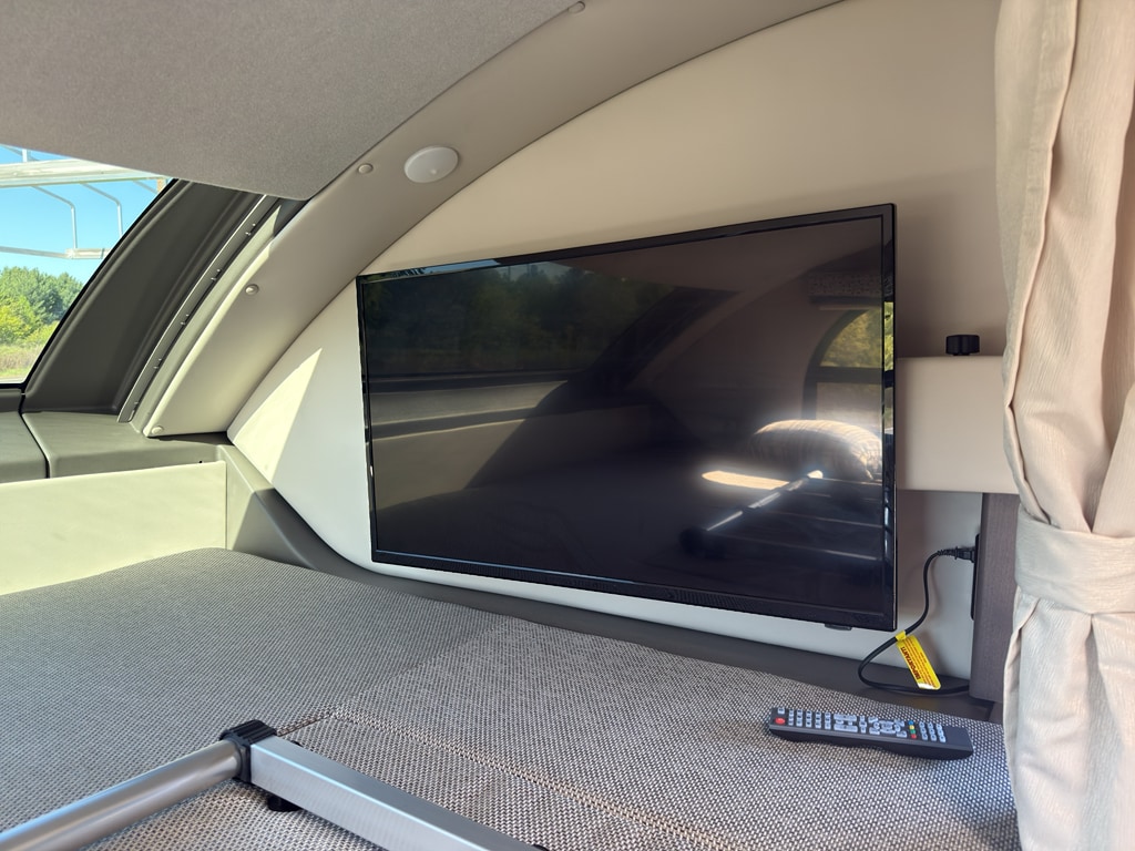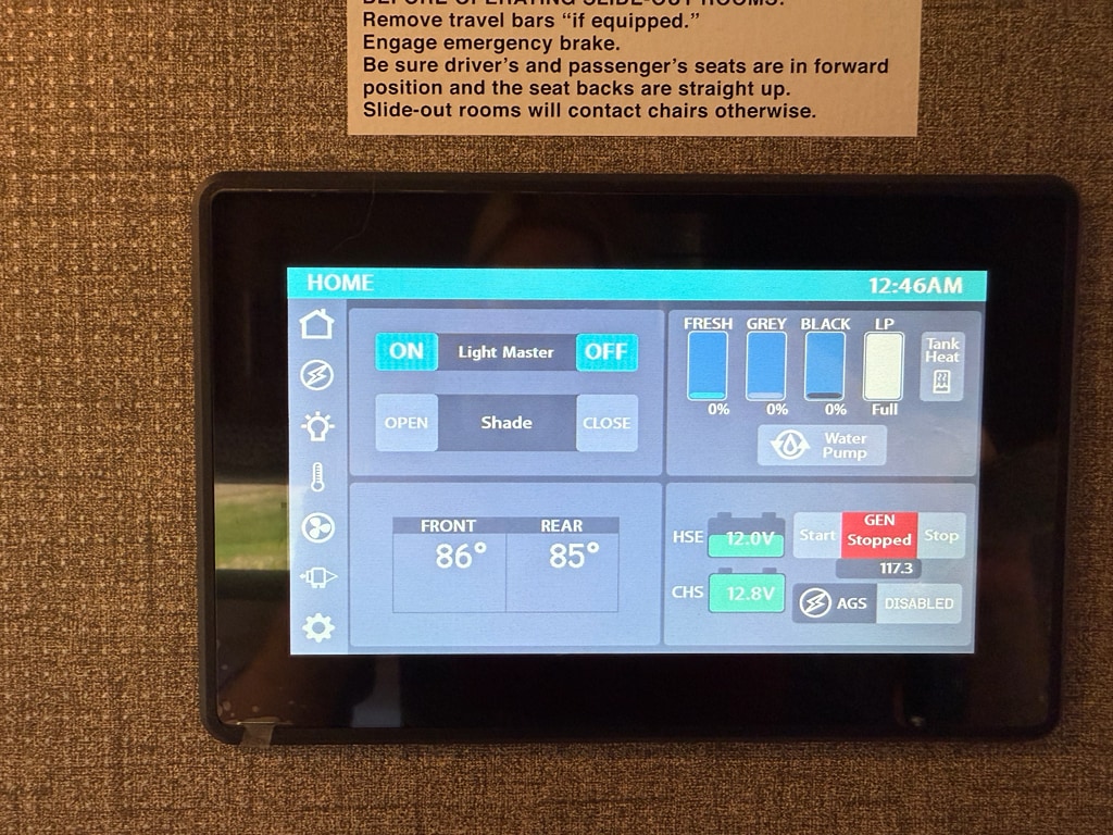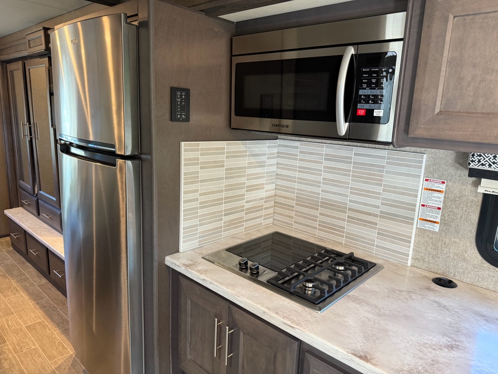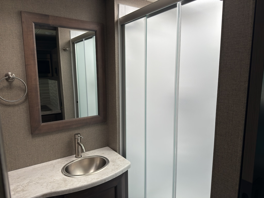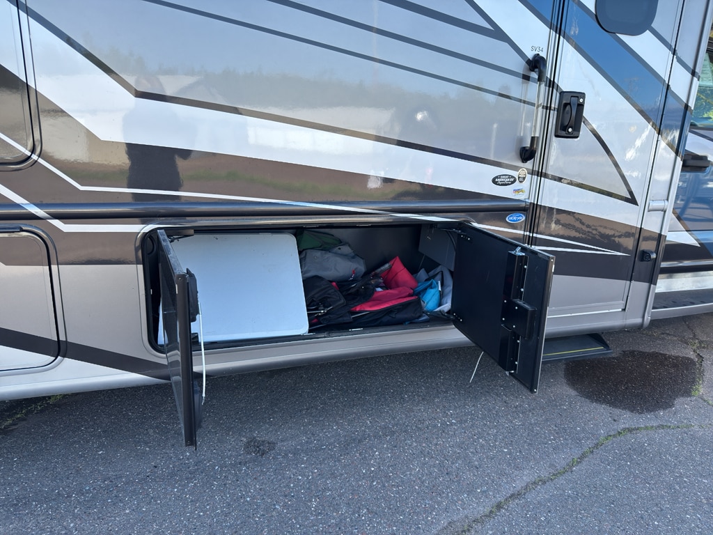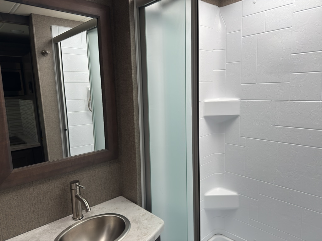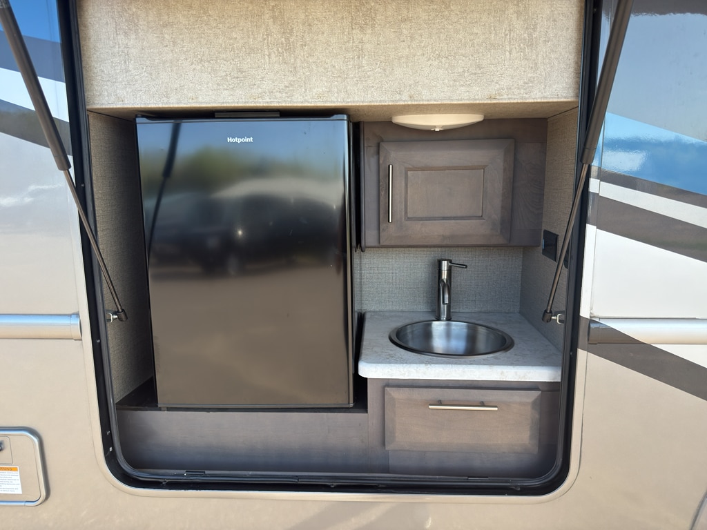 Thor Motor Coach with Full-Body paint package with Gel Coated Sidewalls, Automatic Leveling Jacks with Touchpad Controls, Rotocast Storage Compartments, Flush Mount Radius Luggage Doors, Power patio Awning with Integrated LED Lighting, Powered Sky View Shade in Cab Overhead, Slide out Room Awnings, Roof Ladder, Electric Entry Step, Automatic Courtesy Lights Over Cab Entry, Frameless Windows, 10,000-lb Trailer Hitch with 7-pin Round Connector, Fiberglass Running Boards, Residential Vinyl Flooring Throughout, 84 Interior Ceiling Height, Ceiling Ducted Air Conditioning System, Hardwood Veneer Paneling in Select Areas, Satin Finish Cabinetry with Solid Wood Flat Panel Cabinet Doors and Nickel Finish Hardware, Window Solar and Privacy Roller Shades in Living Room, Power Sky View Shade in Cab Overhead, Leatherette Dream Dinette Booth with Cup Holders, Pressed Laminate Countertops in Select Areas, Leatherette Theater Seating with Incliners and Footrests, Leatherette Sleeper Sofa, Stainless Steel Residential Refrigerator with Ice Maker, 2 Burner-High-Output Gas Range with Single Induction Cooktop, Stainless Steel 30 Over-the-Range Convection Microwave Oven, Solid Surface Countertops an Sink Covers, Under Countertop LED Accent Lighting, Decorative Tile Backsplash, Stainless Steel Double Bowl Sink with Single Handle Faucet and Pull-Down Sprayer, Pop-Up Countertop Outlet, Pantry, 12-volt High Capacity Power Vent with Cover, King Size Bed, Queen Size Bed, Tilt-A-View Inclining Bed Mechanism, Window Privacy Shades in Bedroom, Bunk Beds Convert to Closet, Shower with Obscure Glass Door, Stainless Steel Bathroom Sink, Foot Flush Porcelain Toilet, Macerator Toilet, Power Bath Vent, 39 TV on Manual Swivel in Cab-Over, 39 LED TV in Living Area, 32 TV in Bedroom, TV Prep in Bunk Beds, Exterior 32 TV on Manual Swivel with Sound Bar, Bluetooth Coach Radio System in Bedroom, Cable TV Ready, Digital TV Antenna, USB Charging Ports-Bedroom and Living Area, Exterior Kitchen with 2.5cu. ft. Refrigerator and Sink, Onan RV QD 6000 Diesel Generator, Automatic Generator Start, 50-am Detachable Shoreline Power Cord, Automatic Shoreline-to-Generator Transfer Switch, 1800-watt Inverter, Dual 13,500 BTU Roof Air Conditioners, Dual Auxiliary House Batteries with Battery Tray-Holds up to Four Batteries, Battery Disconnect Switch, 100-watt Solar Charging System with Solar Controller, Whole Coach Water Filtration System, Tankless Water Heater, Water Heater Bypass System, Enclosed Holding Tanks with Head Pads, Enclosed and Heated Holding Tanks, Black Tank Flush System, 360 Degree Siphon RV Holding Tank Vent Cap, Exterior LP Connection, Washer/Dryer Combo Prep, Outside Shower, Systems Control Center