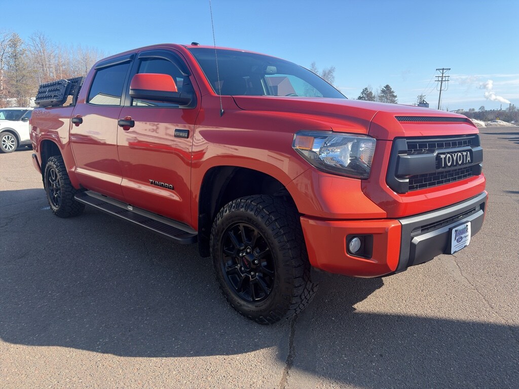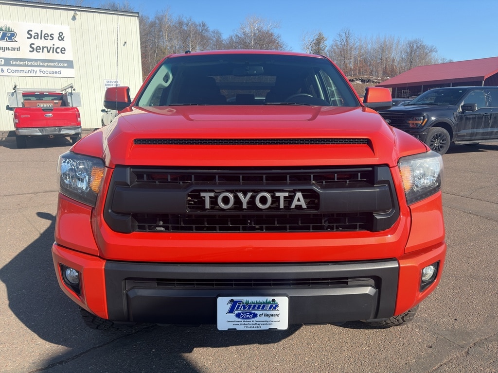Big enough to tow or haul, this 2015 Toyota Tundra has the space, power and durability for anyone. It has four wheel drive capabilities. The high efficiency automatic transmission shifts smoothly and allows you to relax while driving. Protect this unit from unwanted accidents with a cutting edge backup camera system. Maintaining a stable interior temperature in the Toyota Tundra is easy with the climate control system. The Toyota Tundra features cruise control for long trips. The Electronic Stability Control will keep you on your intended path. This unit has a V8, 5.7L high output engine. This unit has fog lights for all weather conditions. The FlexFuel capability of the vehicle allows you to select fuel depending on the price of E85 versus gasoline. This vehicle features a hands-free Bluetooth phone system. The vehicle features a HomeLink System. Help alleviate lower back pain with the driver seat lumbar support in this Toyota Tundra. You'll never again be lost in a crowded city or a country region with the navigation system on this vehicle. The vehicle has an attractive deep orange exterior.